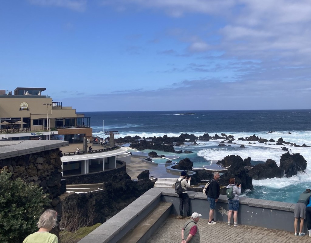 The rock with the windowThe public natural poolsThe black basalt rock and gorgeous blue water Private natural pools in front of a brew house where we had lunchLooking over the sea walk towards the public poolsA waterfall near the town aquarium