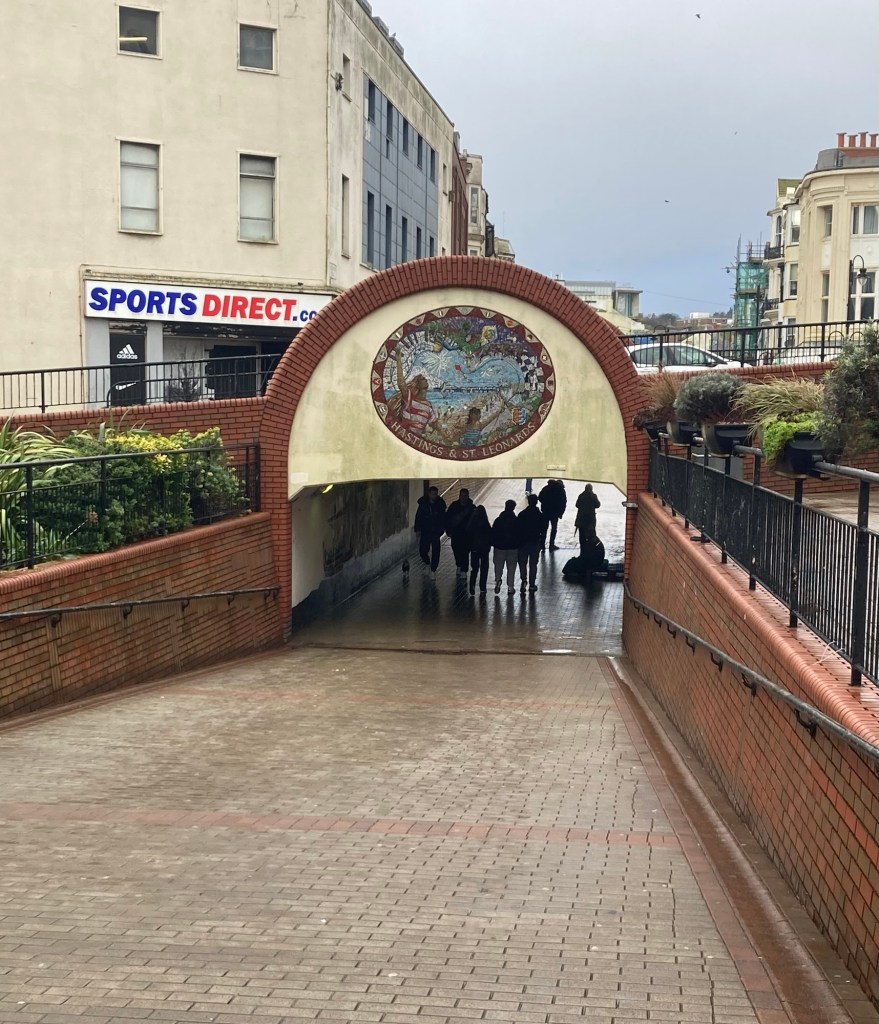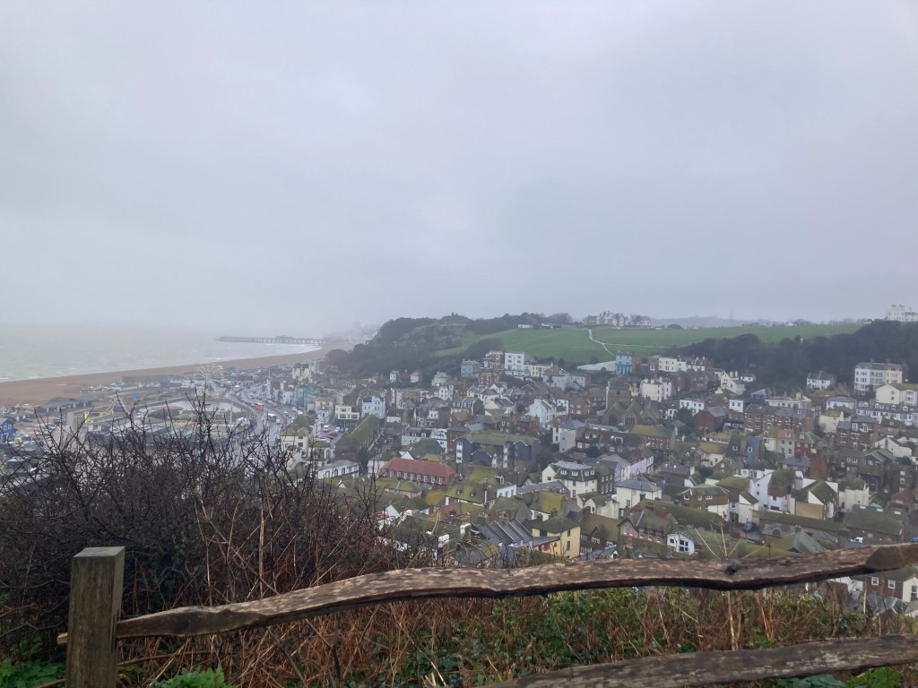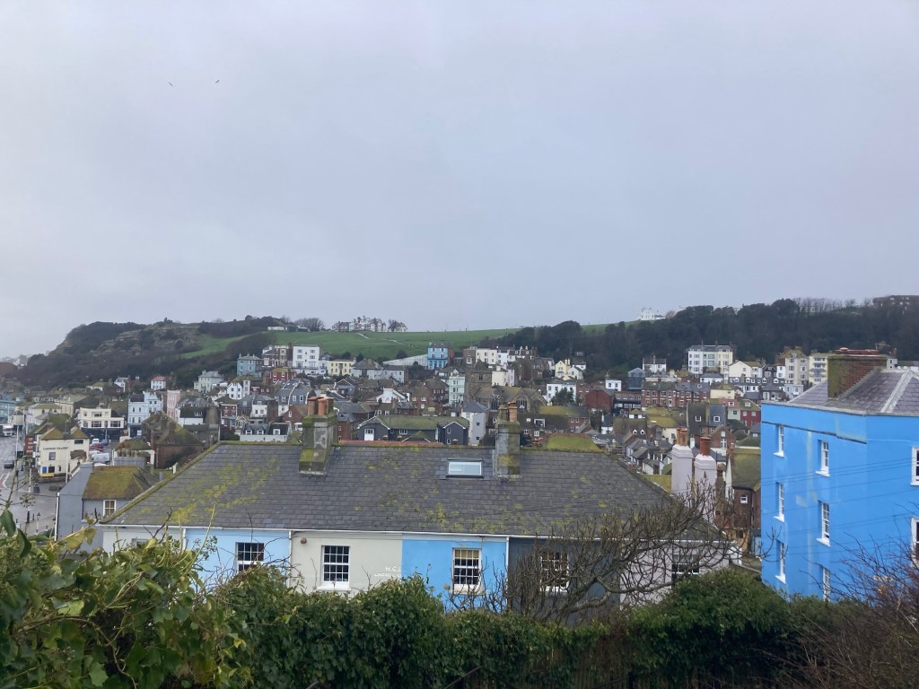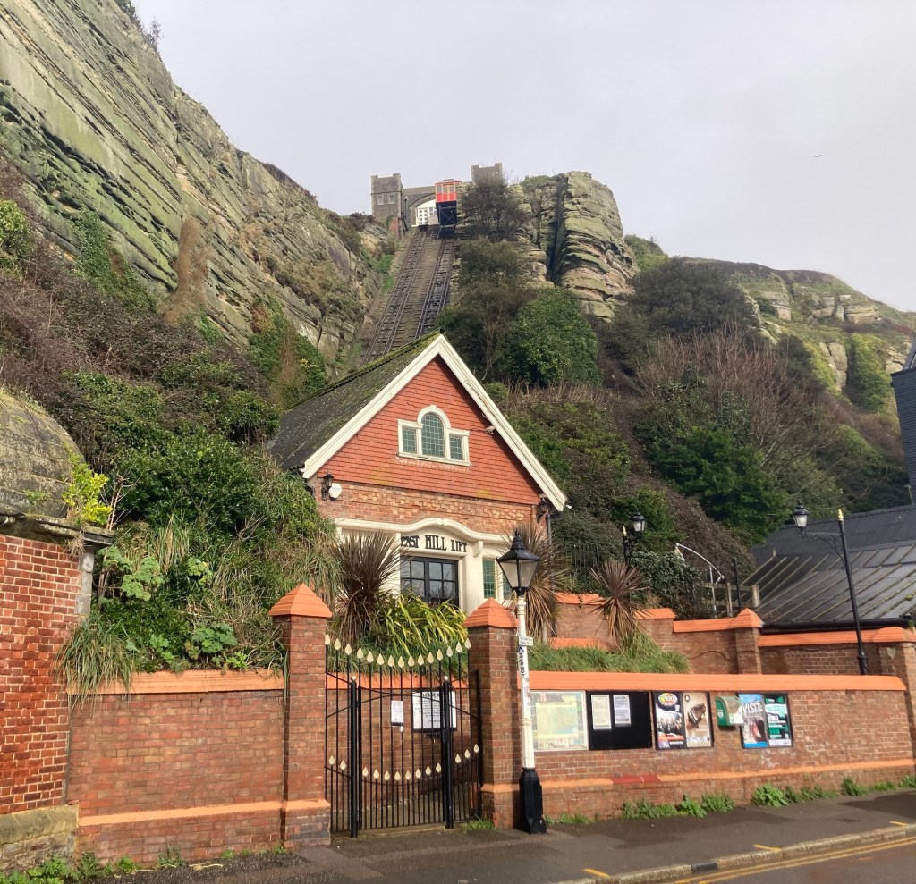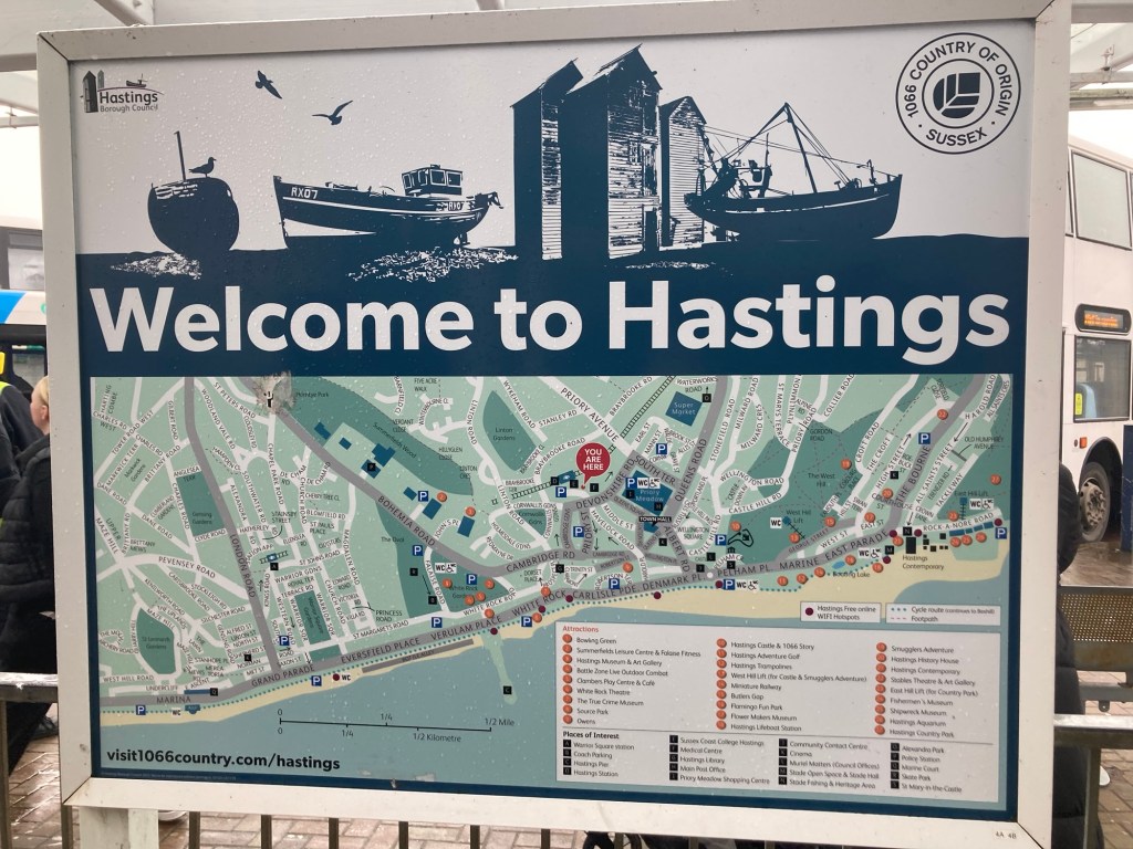 I took advantage of a Tuesday dog walker’s day to do a final train trip out of Tunbridge Wells. This time I went all the way to the coast (about a 35-40 minute ride depending on the number of stops) to the town of Hastings (as in the Battle of Hastings, which as we all now know happened in the current town of Battle).