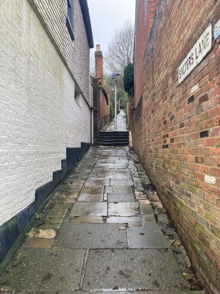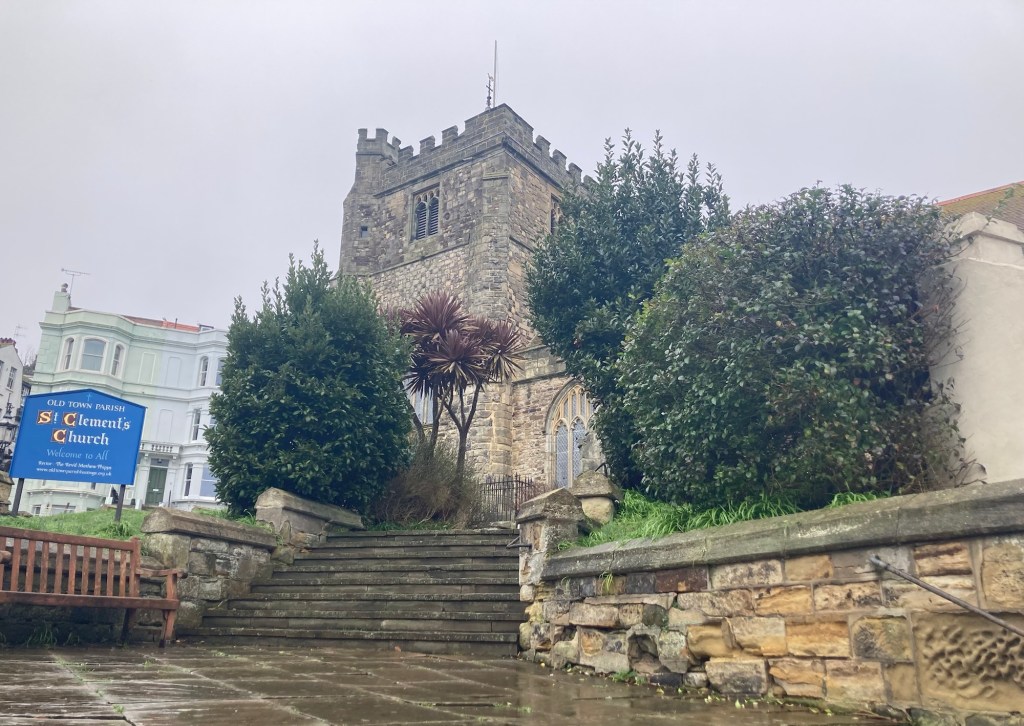 The Flower Makers’ Museum, dedicated to the making of artificial flowers, but not openThe Old Town HallSome older looking homes along the high streetAnother pretty passageway This was the location of the Swan Inn, first recorded in 1523 during the reign of Henry VIII. It survived fires by the French during the 100 Years War and was completely rebuilt in 1889. However, it was completely destroyed by a low-flying enemy bomber on May23, 1943, with considerable loss of life.St Clement’s ChurchA cute pub in Old TownA mosaic- covered pedestrian walkway