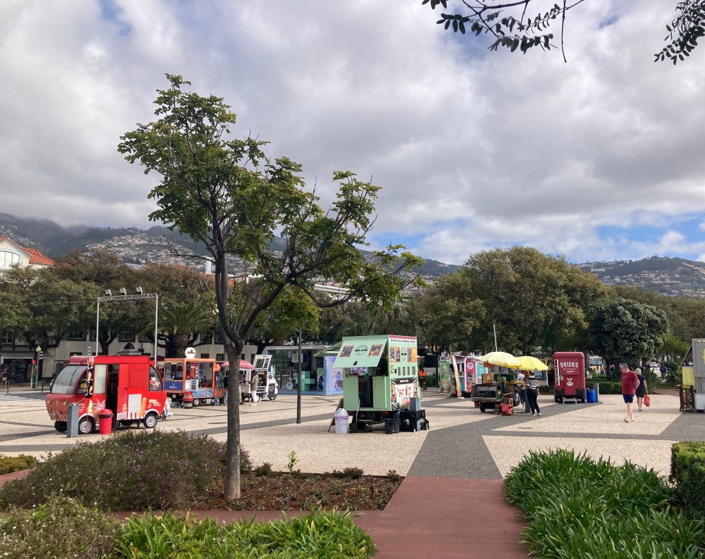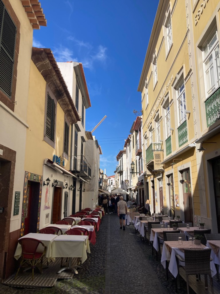 Bob and I decided to stay in Funchal today and took a Bolt into the town center to check out the market and a bit of a Main Street that runs from near our hotel to near the market. It was hopping. We can’t imagine how busy this place must be in the high season.