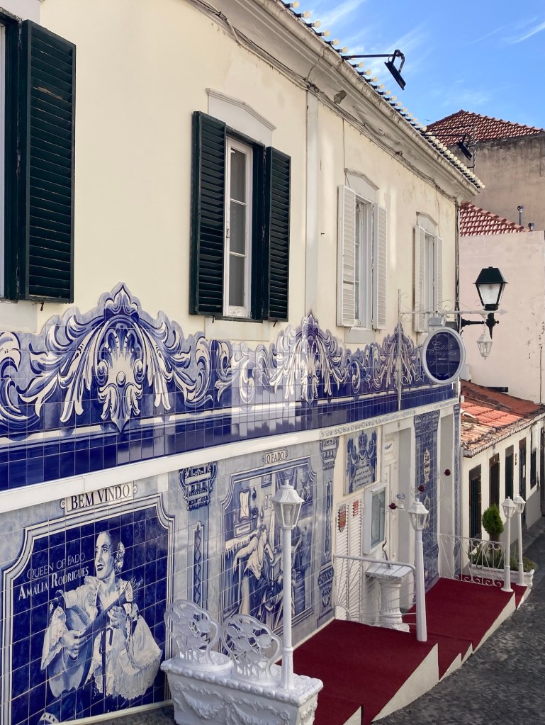 Lots of tiles on a traditional Portuguese restaurant, also referencing fado, the Portuguese folk music