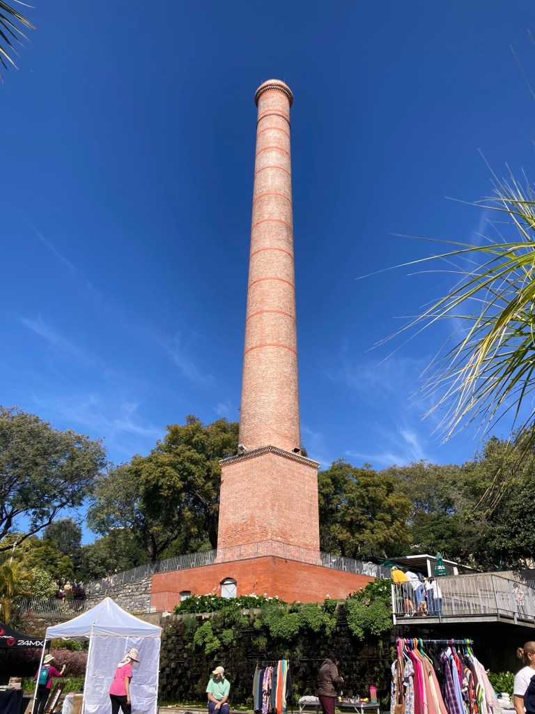 A big tower and flea market in the Garden of St Lucia
