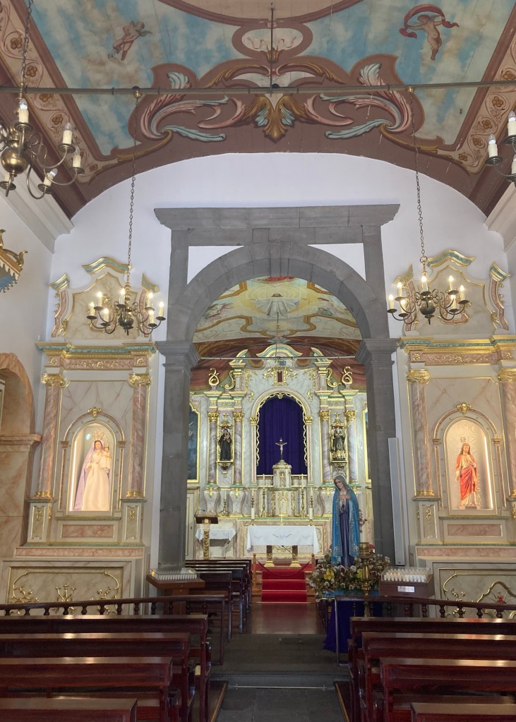 We learned a little bit about Madeira. First, bananas are a main crop, and we saw banana trees all over the terraced slopes of the island. The bananas are only exported to mainland Portugal due both to limits of production and EU standards for size, etc of fruit. Sugar cane is also a main crop, and we saw lots of eucalyptus and then laurel trees, one variety of which provides the bay leaf for cooking.