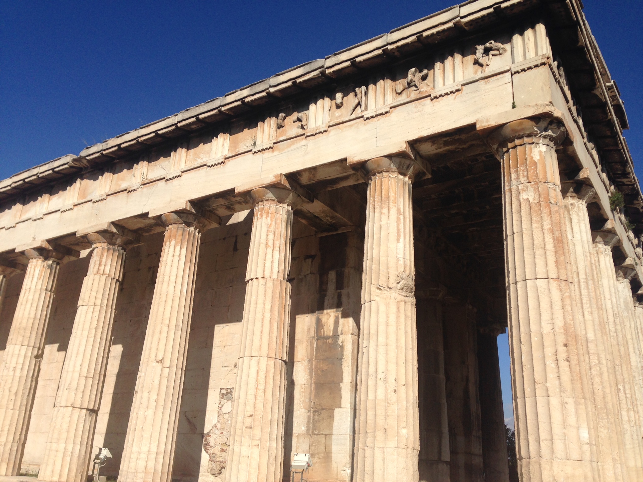 We then wound our way back down the hill to see the ancient Agora (market/meeting place — think of Socrates and Plato leading their discussions). Again, an area and group of structures rather than a building. We spent most time at the Temple of Hephaestus and the Stoa of Attalos.