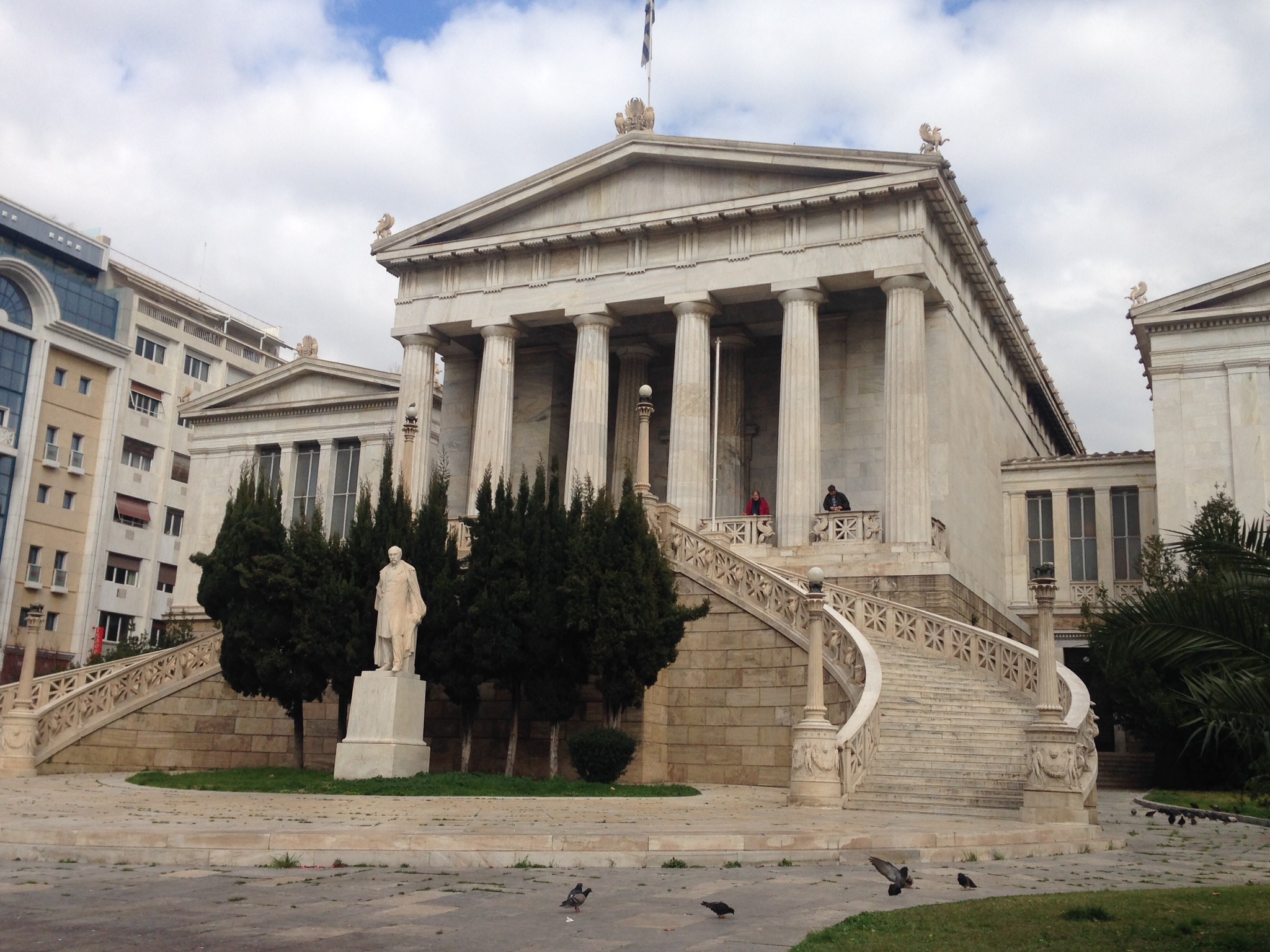 We decided to check out what are known as the Trilogy of Neoclassical architecture in Athens — The Academy, The University of Athens, and The National Library. The exist side-by-side on a Main Street. The Academy was the most attractive from the outside, but the English nerd in me loved seeing the old card catalogs and spiral staircases in the National Library.