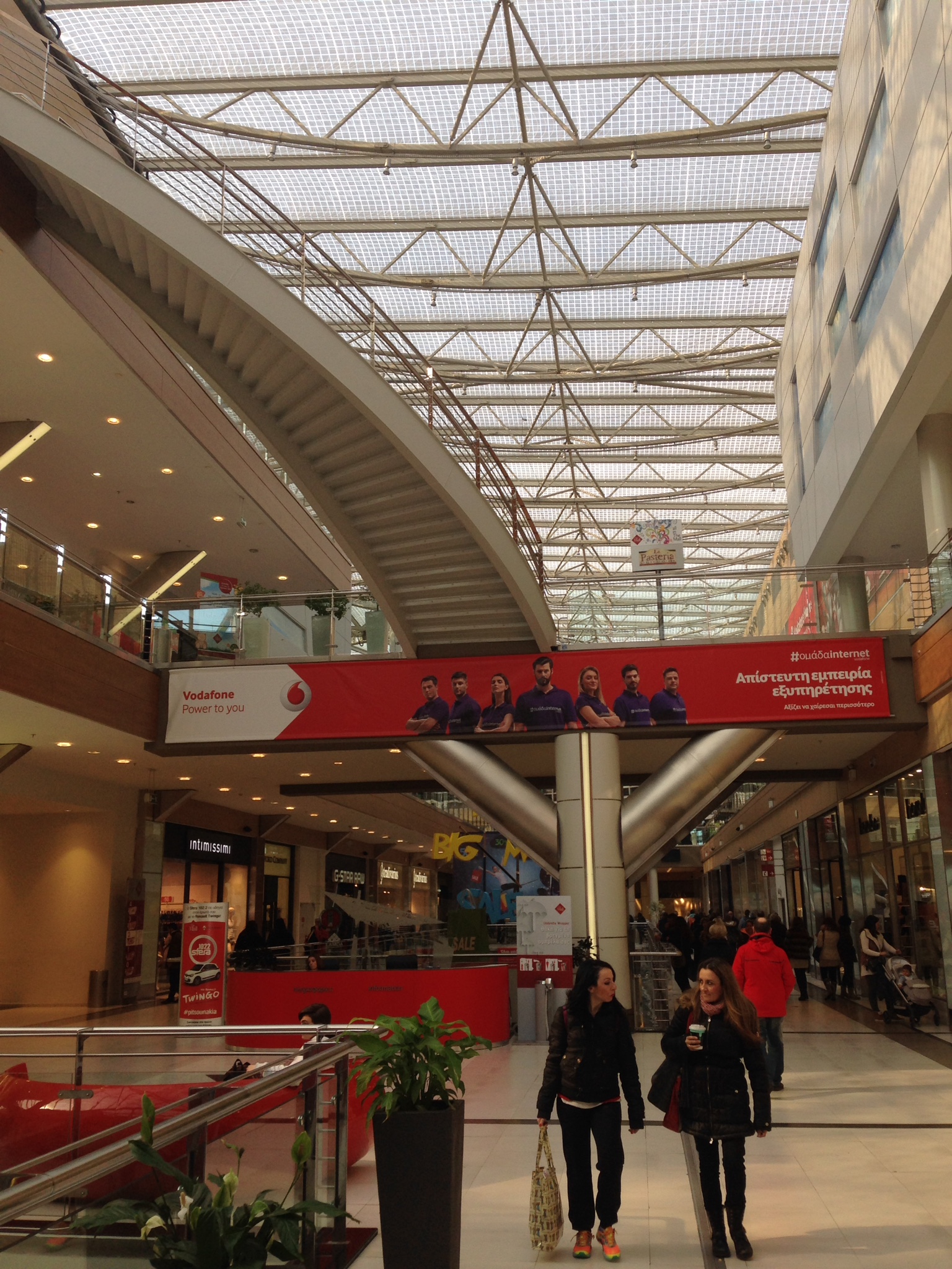 Even the Olympic Stadium from 2004 is a study in contrasts. You can see the amazing architecture, and some buildings are apparently still being used, but the grounds are unkempt and some of the facades are peeling and rusting. When we visited yesterday, it felt a bit like walking through a modern sports ghost town. On the otherhand, we checked out a huge mega mall (creatively called “The Mall”) one metro stop away from the stadium, and it was shiny, airy, and quite busy.