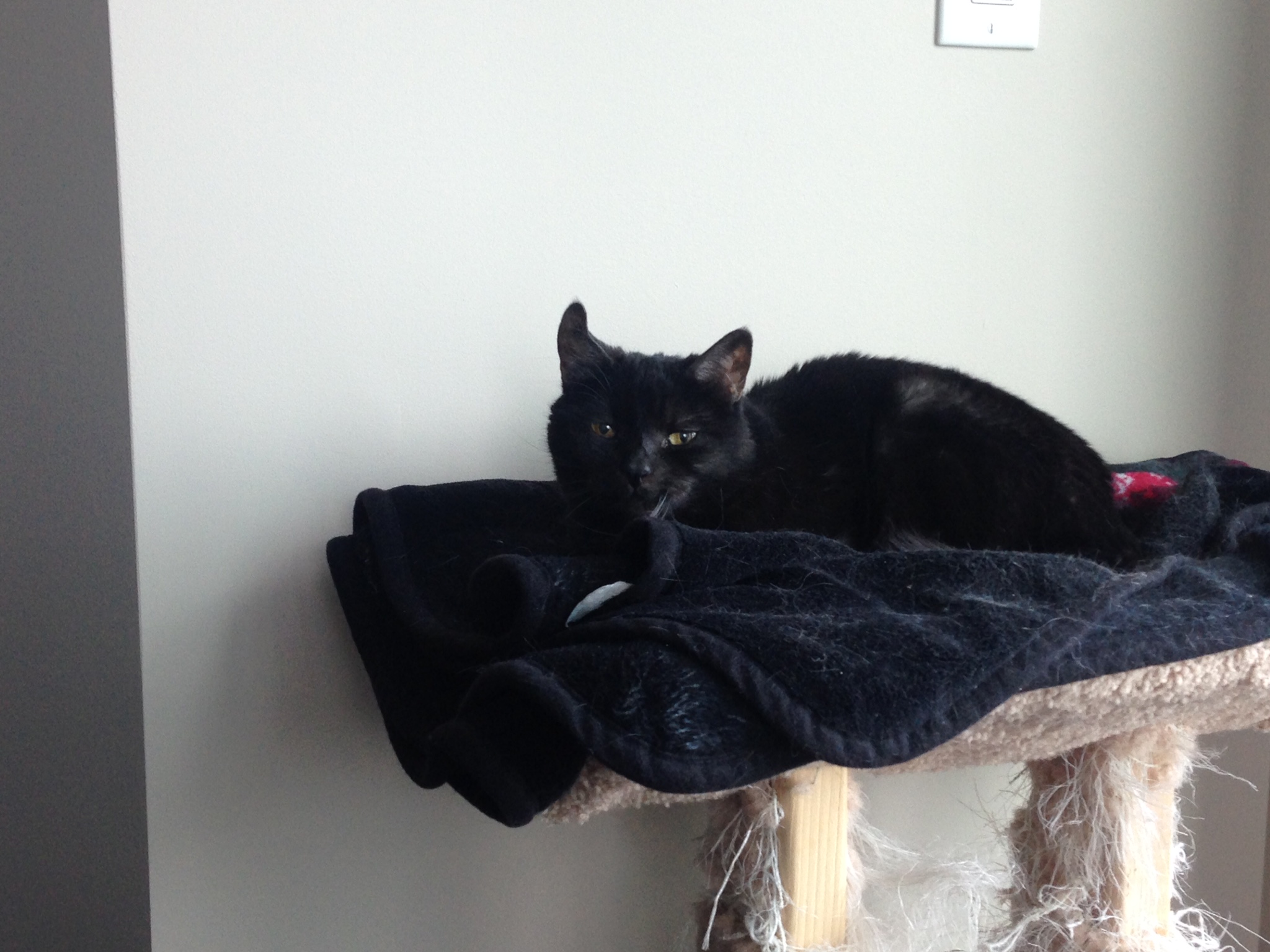 The aptly named Squeak relaxing on one of her favorite perches.Purrcy and Bob.