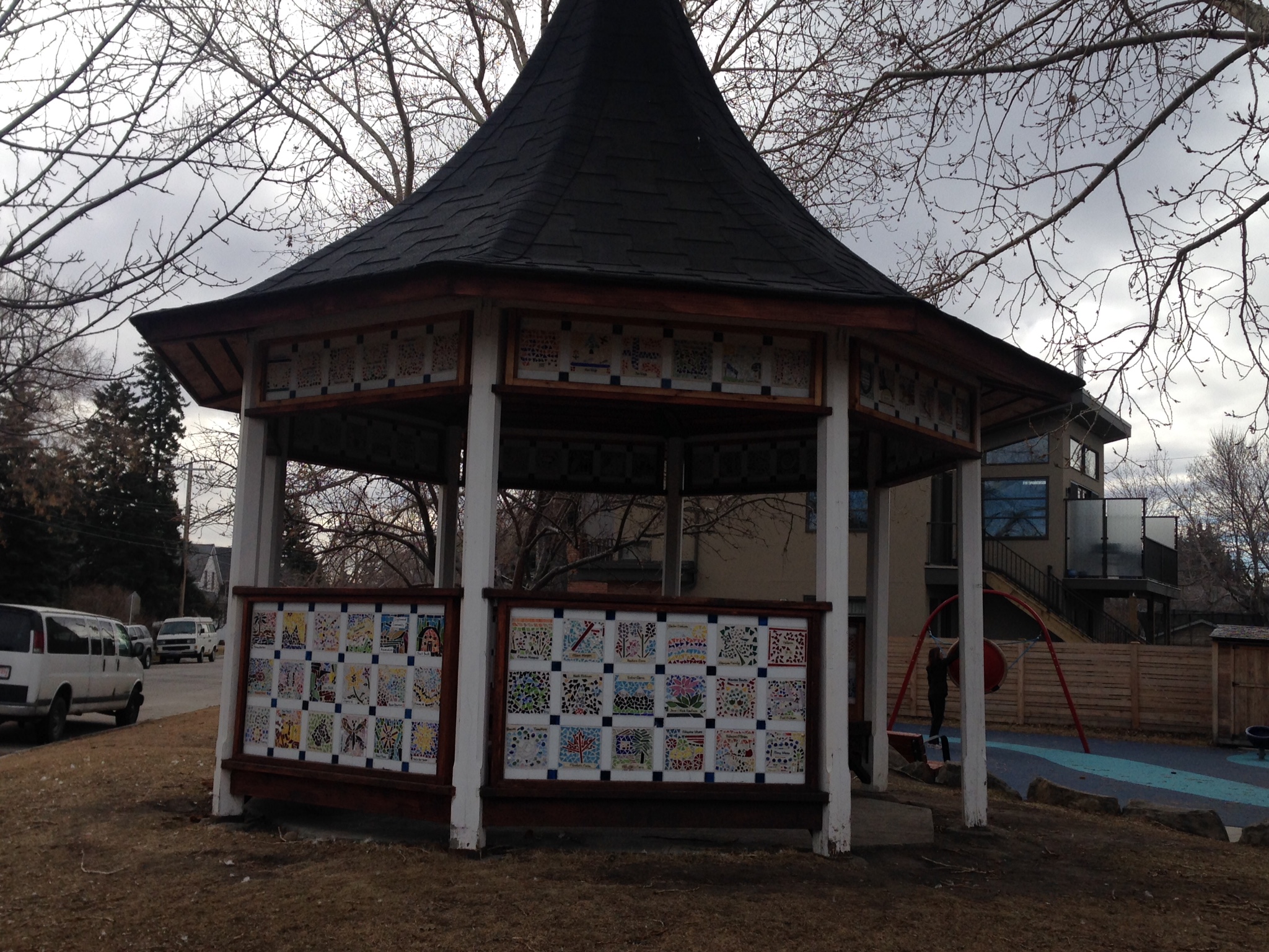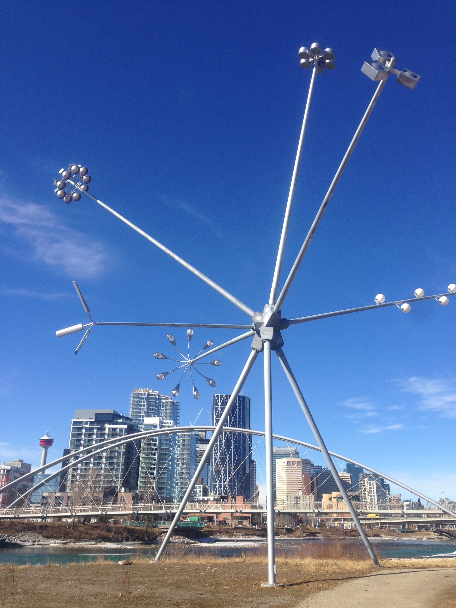 Inglewood is just east of Fort Calgary, and the original residential area of town.Gazebo in a park in InglewoodLooking north across the BowBob in front of a cool public art piece along the trail.Beth on a footbridge at the bird sanctuary.