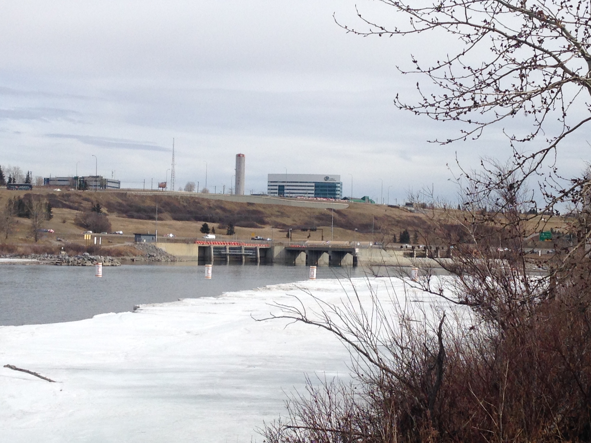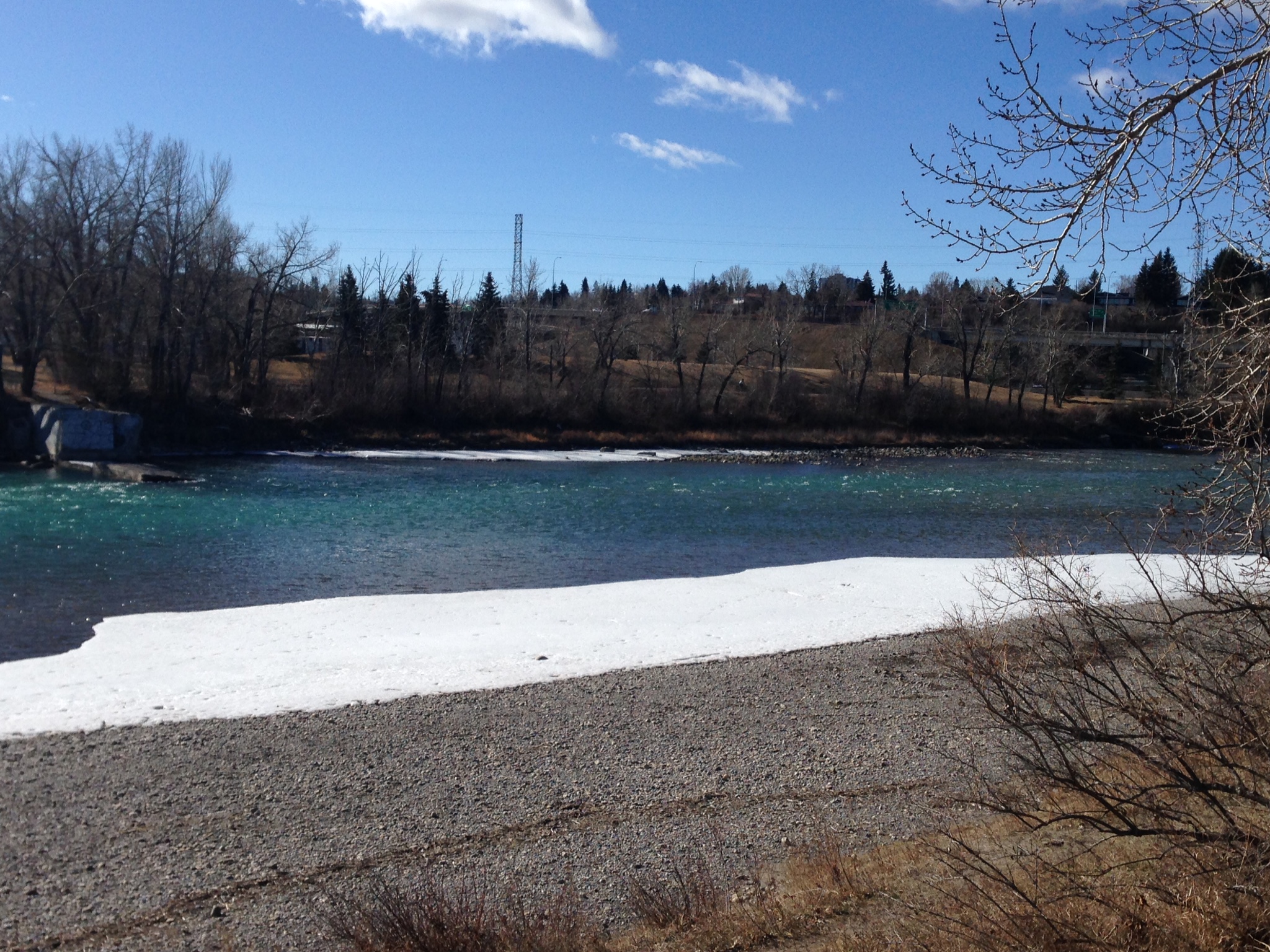 On Sunday, we went west (young man) against a chilly head wind on the north shore of the bow all the way to Edworthy Park before crossing over to the south side for the walk back. As some of the trail was closed, we ended up detouring onto the Douglas Fir Trail, which was open, but took us up into the hills along the footpath which was still ice and snow covered in parts. However, it brought us back to a railroad crossing where Beth had run to on her first long run of the trip. We continue to be pleasantly surprised by the number of people hiking, biking, and running on the trail. Most of the runners wearing a lot less clothes than me when I head out!