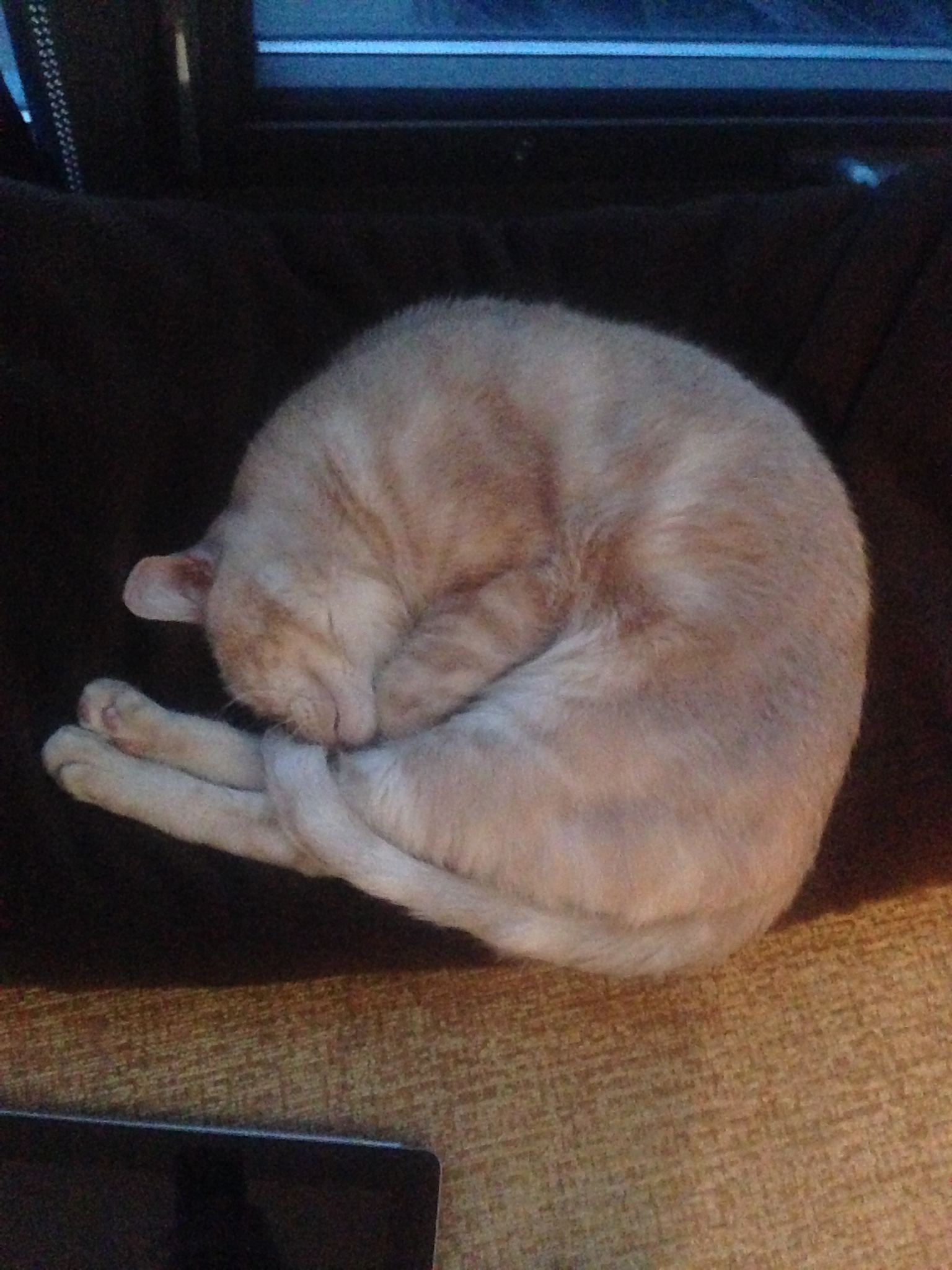I can’t believe Bob and I have only been here a little more than a week, as it already feels like home! The condo is great — awesome, central location with great views. Bob was always the high-rise guy, but I’m beginning to get persuaded – especially when you live over a market, wine store, and coffee shop. We also are caring for some great cats. Squeak, is female, inky black, and actually squeaks rather than meows. She is her own individual, and you definitely play by her rules. She takes medicine every other day which was a bit of an effort the first couple of times, but we have managed as she is beginning to accept us. Purrcy is a ginger-colored male. He is more outwardly affectionate and likes his tummy rubs.