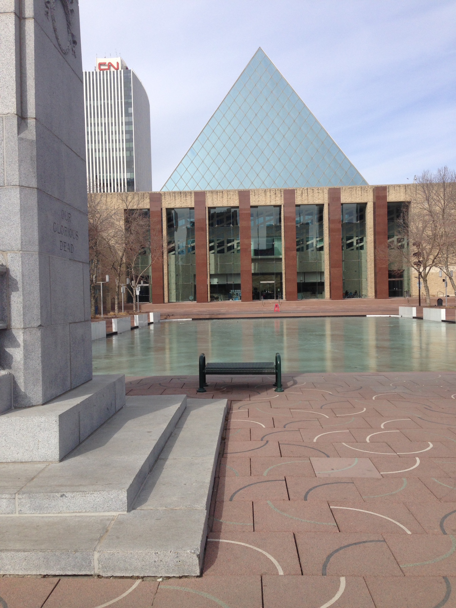 One of the bridges that we crossed.View of City Center from bridgeFlame and Legislature BuildingWinston Churchhill SquareArt GalleryThe indoor pool and water slides at the West Edmonton Mall