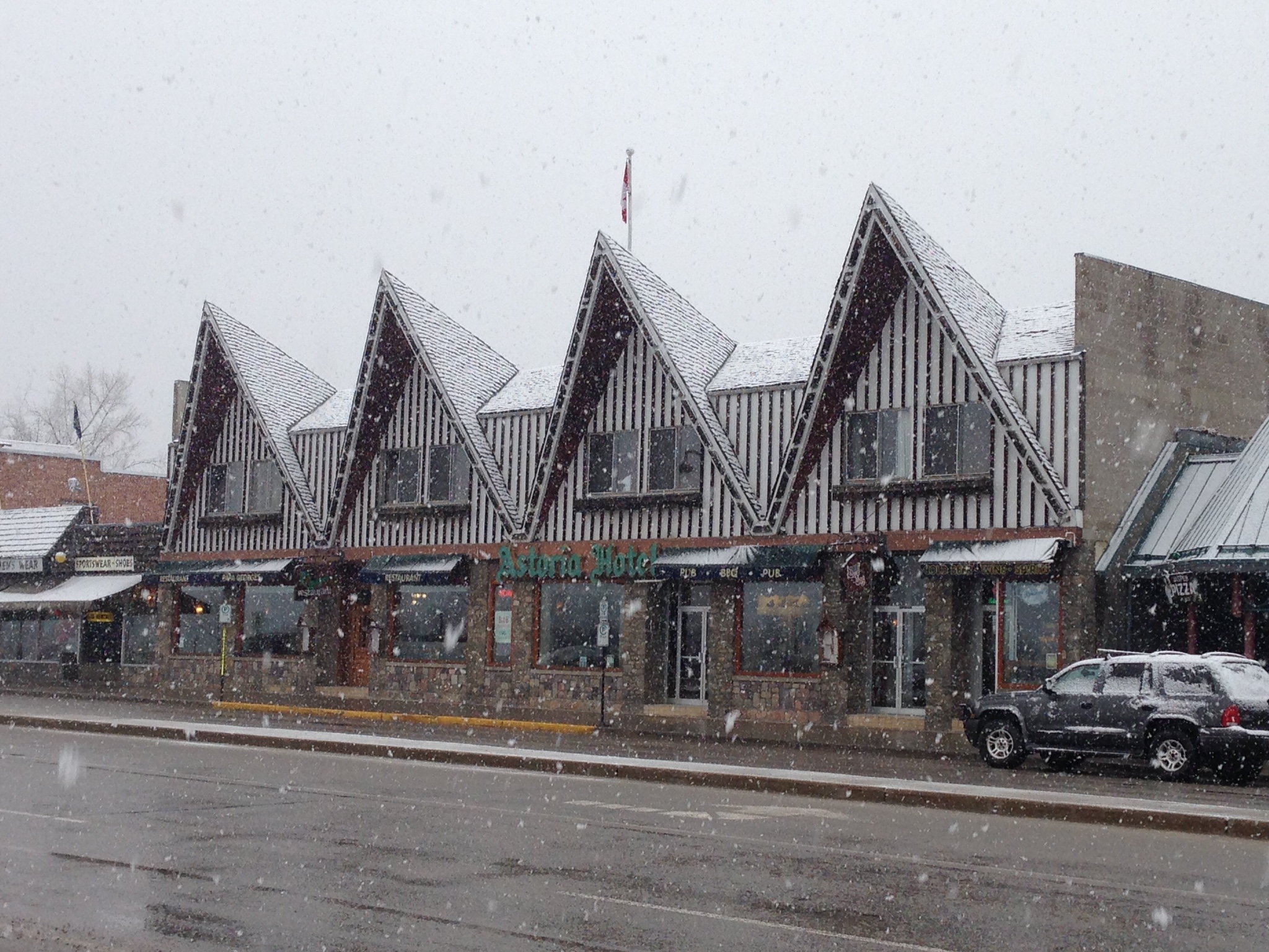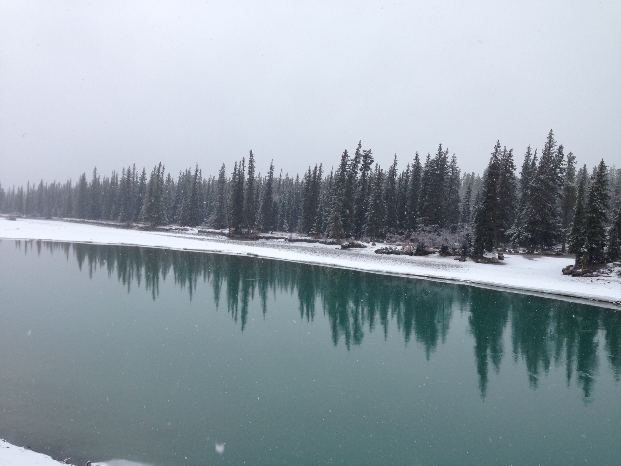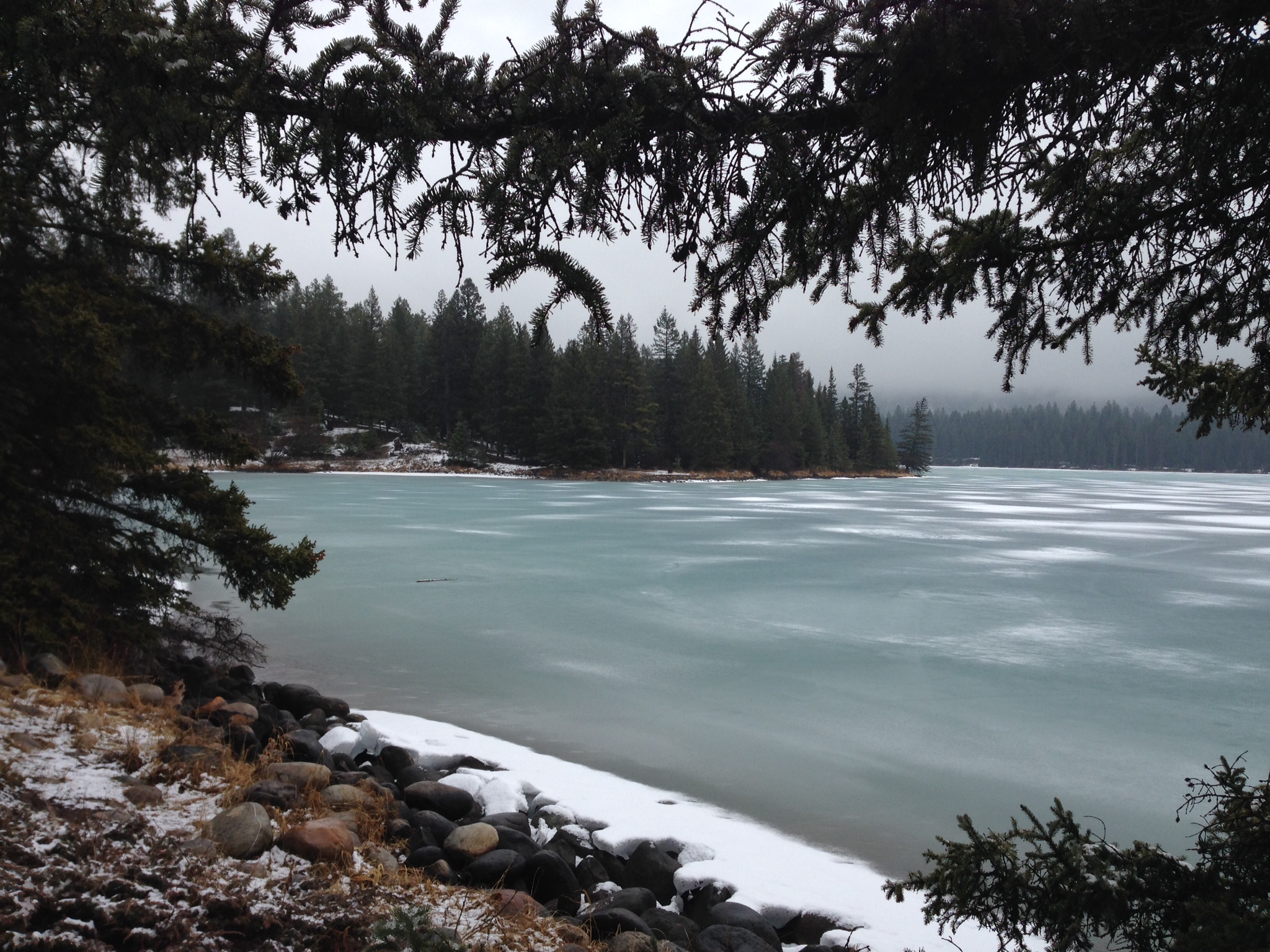 Maligne Canyon on way into Jasper.Medicine Lake — down the road about 15k from Maligne CanyonBurned trees around Medicine Lake. In 2015, a lightening strike started a fire that burned for 9 days underground before destroying acres of trees near Medicine LakePart of downtown Jasper — on main drag (Connaught Avenue) during our snowy hike on MondayMore views of snowy hike on MondayOne of the lakes near the Fairmont Jasper — where they aren’t shy with their pricing. A 12 oz bottle of soda was $4.50 and a 2-3 oz tiny bottle of Kahului was $11. We stuck with our picnic lunch!Our first sighting of wildlife (non birds) in Canada — getting close to elk on our hike back into Jasper