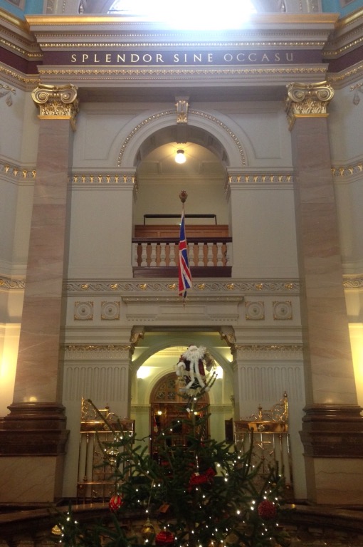 A bridge mural on the Galloping Goose Regional Trail, my running path of choice for this section of our trip. I didn’t get close to seeing the complete 55k of it.Beautiful bushes, berries, and buildings along the trailOne of many displays of First Nation culture along the trailThe Isle of the DeadView across the Inner Harbor from downtownBrrrr! View of the fountain in front of the Parliament buildingThe second floor of the main rotunda — most of the Christmas tree can be seen on the first floorCanada is celebrating the 100th anniversary of women having the right to vote in Canada. Currently, the 3 major governmental positions in BC are held by women — the Premier, the Lt. Governor, and the Speaker. SighView of downtown Victoria at sunset