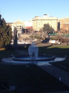 On Tuesday we had a great walk-about on the Galloping Goose Trail and along the harbor in pretty chilly and windy weather. We toured the BC Parliament building and learned a bit about the building, the BC coat of ATMs, and the governmental structure. One fun fact is that the provincial governments are unicameral while the federal government is bicameral like the US. Also, the Lt. Governor acts as the Queen’s Representative for the government. We also hit a happy hour at the Chateau Victoria Hotel downtown for great sunset views of the city.