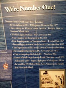 Nanaimo has its own museum that provides an overview of the history and heritage of the local area. We found it to be cute, informative, and a real bargain at $2 per person. Our main interest in going was to learn about the Nanaimo bar (cookie not tavern) that we had seen throughout the island. We didn’t learn much about the history of the confection, but we did get the recipe.