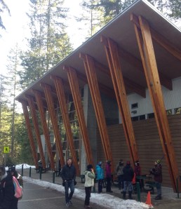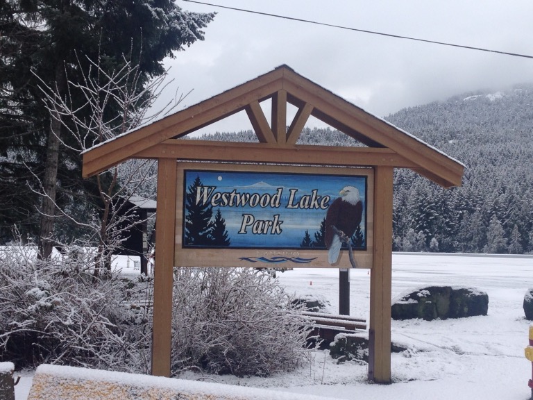 Park entrancePark cafe (closed for season) and restrooms (happily not closed)Suspension Bridge XingNavigating ice on our walk thru the woodsLynn Valley Public Art