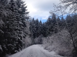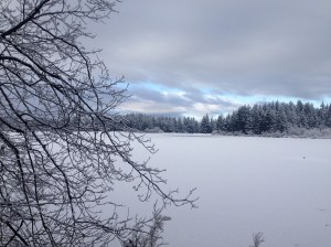 We had a winter wonderland day on Tuesday, as we walked to Westwood Lake Park, the park favored by local runners. It ended up being a beautiful winter hike.