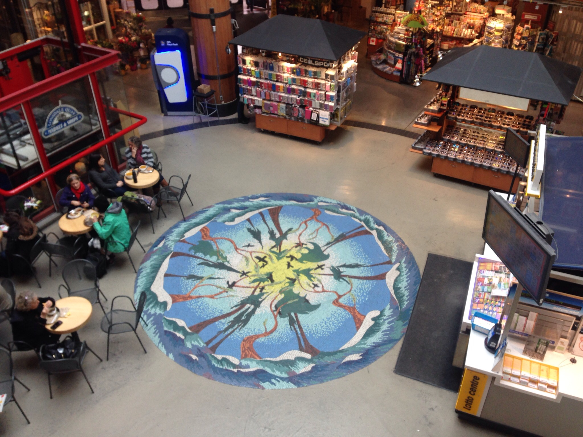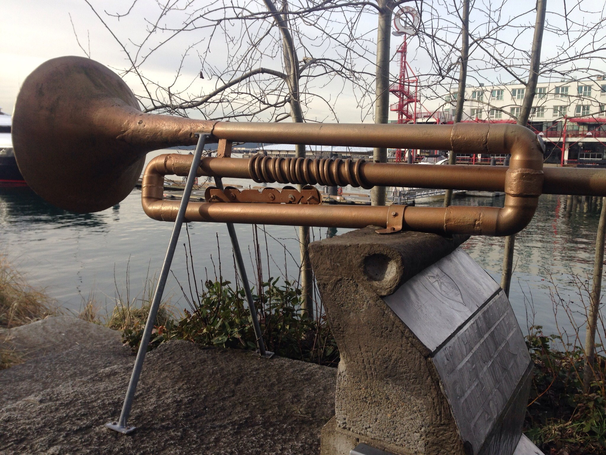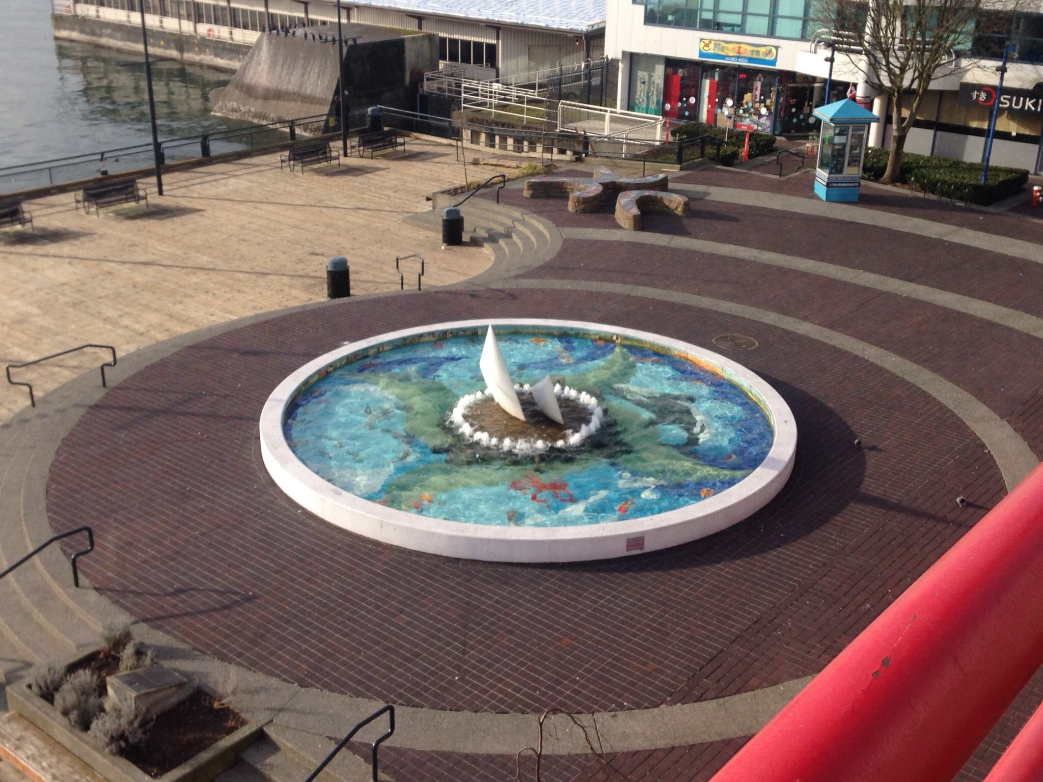 Awesome interactive art — you push a button to hear trumpets playing various songs. We were amazed that the 2 song clips that it played for us were My Country Tis of Thee and When Johnny Comes Marching HomeA mosaic on the 1st floor of the Lonsdale Quay Market a small indoor market area with food vendors, retail shops, and even a hotelA fountain outside of the market as seen from the top of the Q tower (see 1st photo)Boathouses along the harborAberdeen Block Building on the Heritage Walk, originally occupied by the BC Electric Railway CoNorth Vancouver’s 1st apartment blockMore awesome artLynn Canyon Park