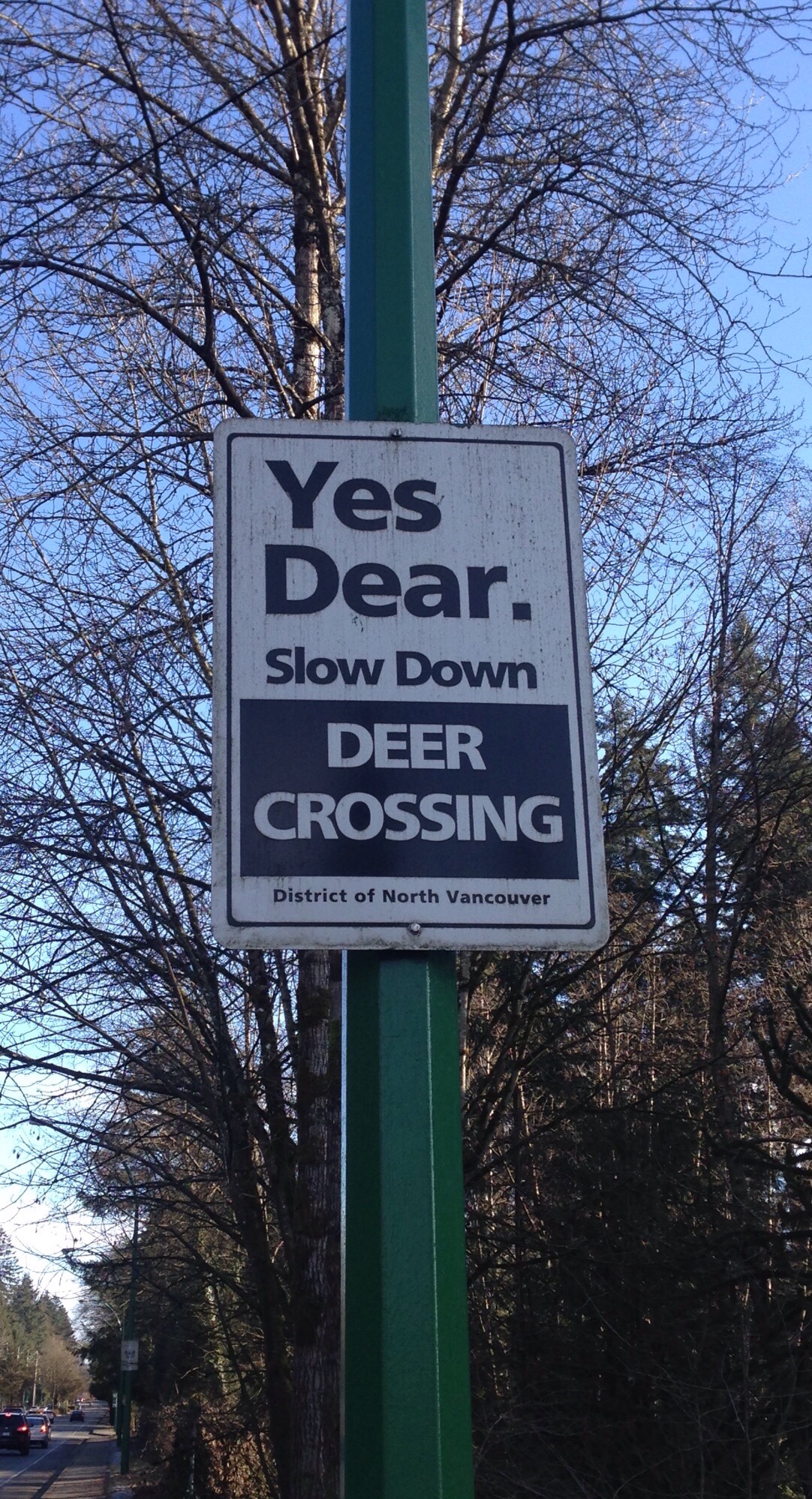 This was outside of a school in Nanaimo.Outside a restaurant in Lonsdale — I tend to agreeNote: No assaults were experienced in the use of this (and the other) restroom. Can we send this to NCAA and TX to encourage them to find a real issue to address?I always appreciate a funny versus mean way to get a point across.Nothing good comes of hitting either dear or deer