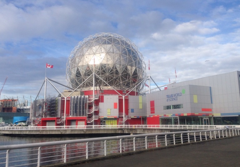 The science museumA different version of big bird — this one (and its mate) are in the plaza of what was the Olympic Village but which are now residencesOne view of Vancouver HarborPublic art from storage elevators on Granville IslandBeaver Lake in Stanley ParkProspect Point in Stanley ParkLions Gate Bridge which connects West Vancouver to Vancouver in Stanley ParkView of West Vancouver from Stanley ParkHeading back into townSome of the walk and beaches