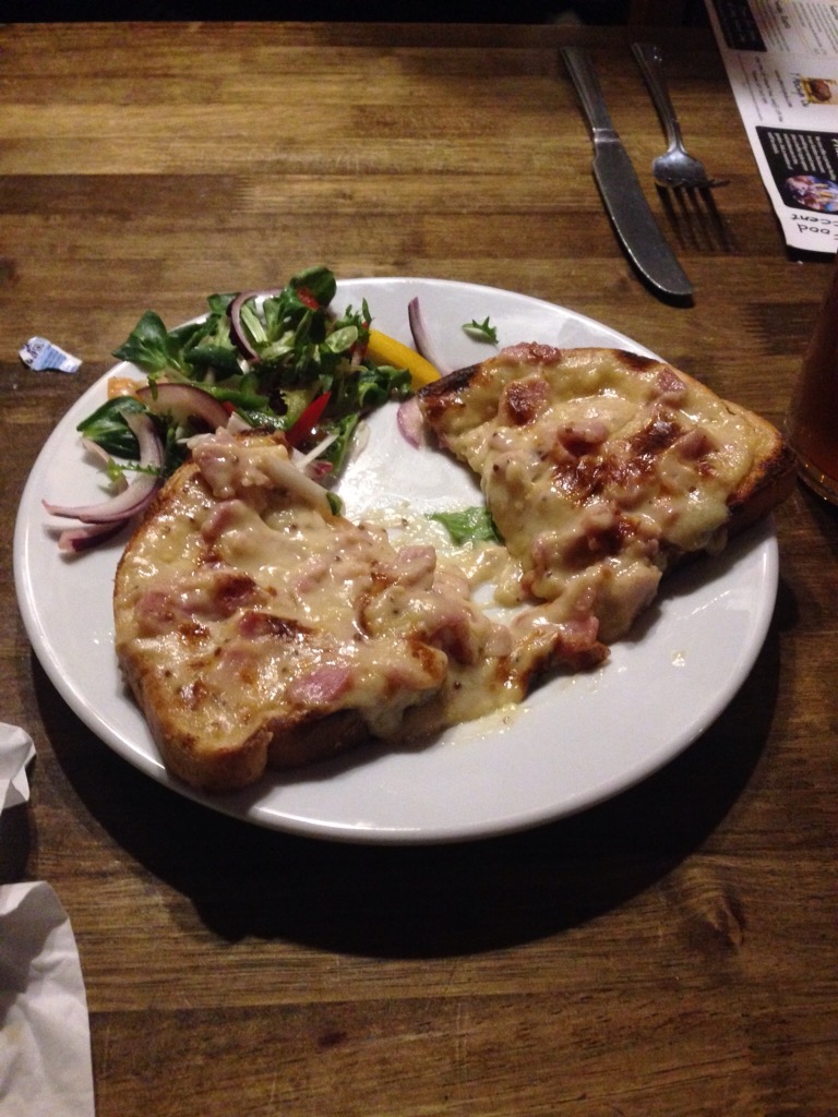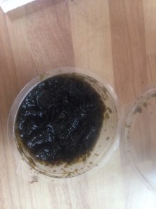 Along with learning a couple of Welsh words, and watching our homeowners perform (on tv) in a Welsh- language soap opera, we also tried a few traditional Welsh dishes. The first two dishes below we had at a lovely local pub. The third we tried a sample of at a local market before buying some at the grocery. Due to its name (laverbread), we initially had a bit of trouble finding it. We assumed that it was in bread so we were looking for it in bakeries. It can be (sort of — see below). But It is sold in its “raw” form in the seafood section.