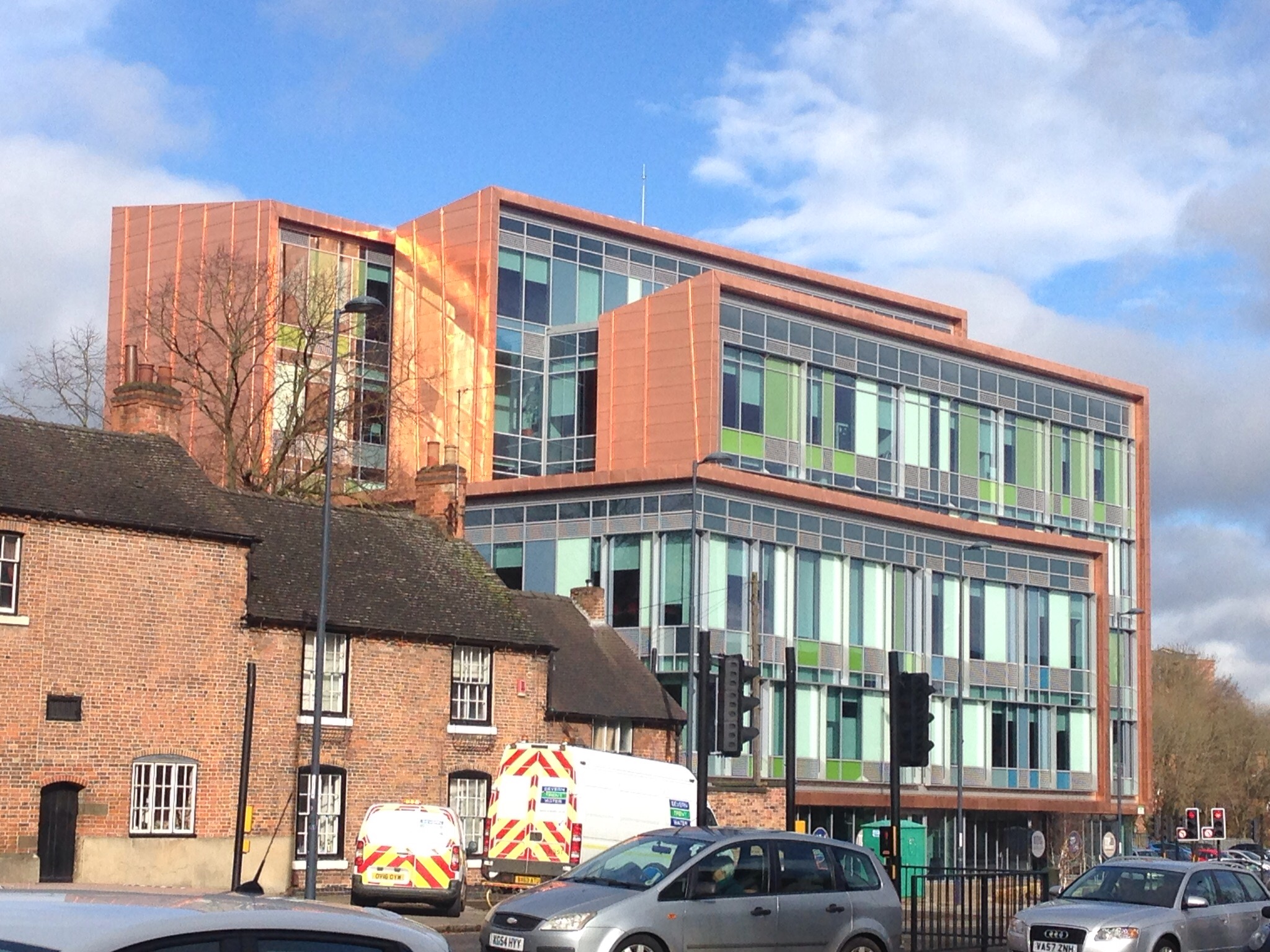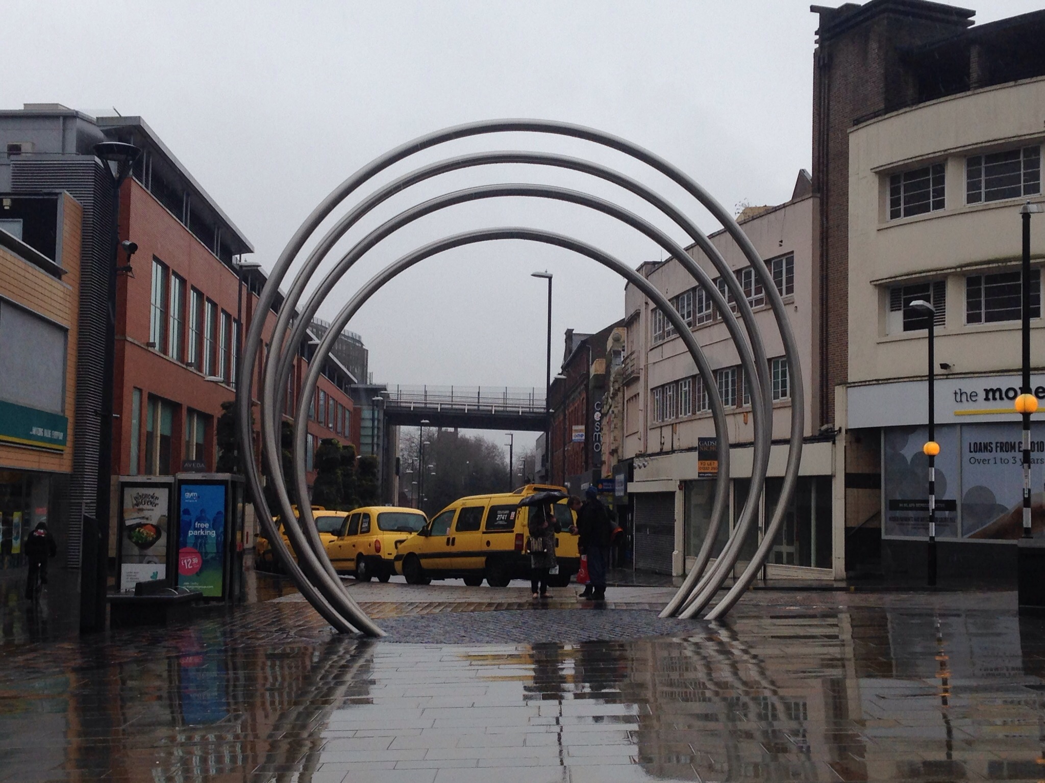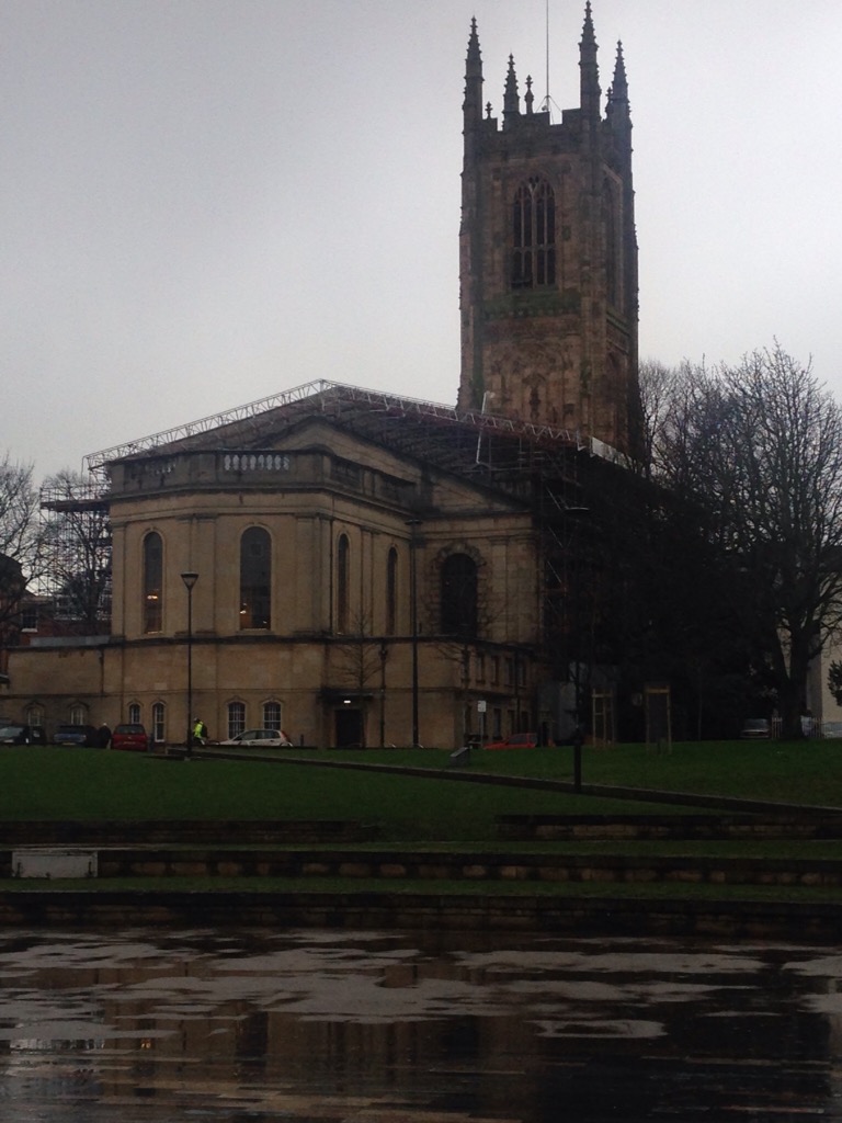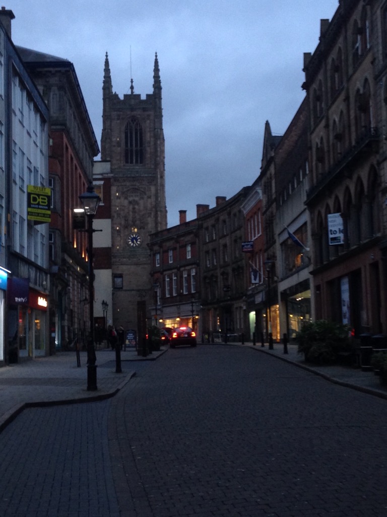 A twilight stroll through town after an awesome tapas mealCool architecture in the central city areaFun public artThe Eagles Market incorporated into the new Intu Derby mallInside Intu DerbyThe bar/lounge inside the Intu Derby cinemaThe old silk mill, opened in 1718 as Britain’s first factory. It is now Derby’s Industry Museum — unfortunately not open on days when we were in townA pedestrian bridge over the River DerwentThe Museum and Rt Gallery which featured many of the works of the local artist, James Wright, as well as natural history. It is housed in the same building as the public library.This was in the natural history exhibit — not a creature we had heard of beforeThe Pickford House — the Georgian home and office of Derby architect Joseph PickfordThe Pickford House gardenDerby is known for the fine porcelain that has been made in this site since 1878 though it was started in 1750. Many of the tea sets used in Downton Abbey were Derby porcelain.The rear of the Derby Cathedral — the scaffolding is there to replace the lead roofThe front of the cathedralA plaque for the founder of the Royal Crown Derby China The copper-coated building is one of the buildings of Derby UniversityA view of Derby from the back of our hotel
