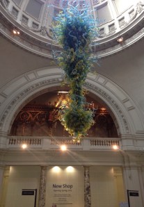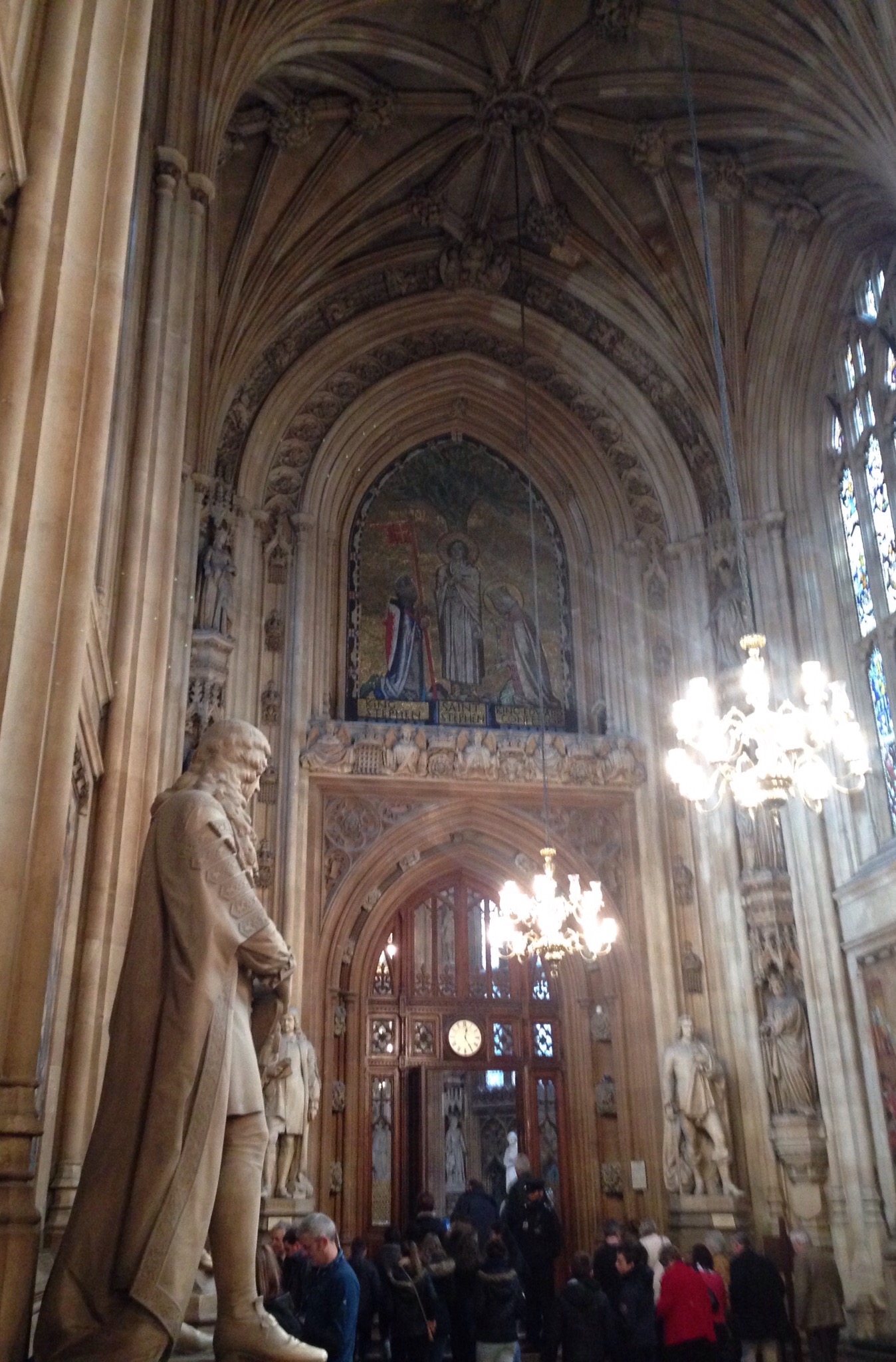 We also spent a good part of a day visiting the Palace of Westminster (Houses of Parliament) and walking through some of London’s lovely parks. We sat in on part of a session of the House of Commons and heard them debate a government proposal to address youth homelessness and heard another member propose that the nation hold celebrations later this year to mark the Queen’s Sapphire Anniversary on the throne.Our first view of the London EyeThe Houses of Parliament and the Clock (now Elizabeth) Tower — Big Ben is actually the nickname for the bell inside the towerSt. Stephens HallA portion of the circular Princess Diana Memorial Fountain at the end of Hyde Park near Kensington GardensThe Peter Pan statue in Kensington ParkA statue of Queen Victoria in front of Kensington PalaceA pond in Kensington ParkThe modest Albert Memorial in Hyde ParkThe modest Albert Memorial in Kensington ParkThe amazing and free! Victoria and Albert Museum of decorative artsA Chiluly art sculpture in the main entrance to the Victoria and Albert MuseumOne of the wings of the museumThe inner courtyard of the museumPart of the exhibit on revolutionary music of the 60s