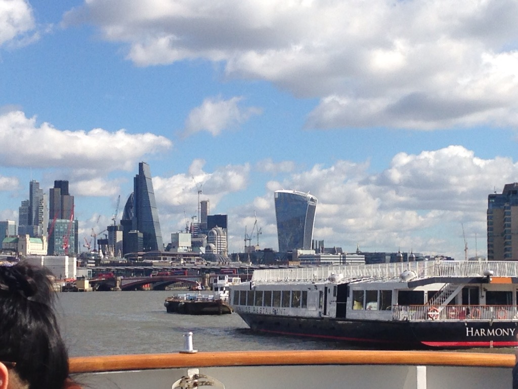 Bob and I are just beginning our week-long housesit in Banbury, England, but we need to finish our posts for Isleworth/London. The following is my attempt to show some our highlights from the big City of London with a second post to follow on our final excursions closer to Isleworth. Our time in London over the past week or so was spent on seeing the sights from a boat, a pod, and a Skygarden. We paid for the views from the boat and the pod (the Eye). The Skygarden was free, but we had to reserve a time to go up. We also made time to people watch and enjoy some the food at a local market.