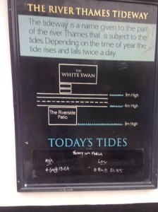 We have enjoyed walking and running along the paths that follow the Thames but have been surprised by flooding on them on more than one occasion. One day I ran out on the path only to have part of it be under water when I ran back. With London being so far inland we were sure it couldn’t be tidal, but we have learned we were wrong. The Thames has one of the most powerful tidal flows of any river in England. It is a tidal river for 55 miles from the outer estuary between the Essex and Kent coasts to just past Richmond. The difference between high and low tide at Tower Pier can be up to 26 feet and it takes about 5 hours for the tide to come in and more than 7 to go back out.(londonsriver.com)