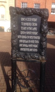 Here are the current versions of the Banbury Cross and fair lady on a horse (though not white)