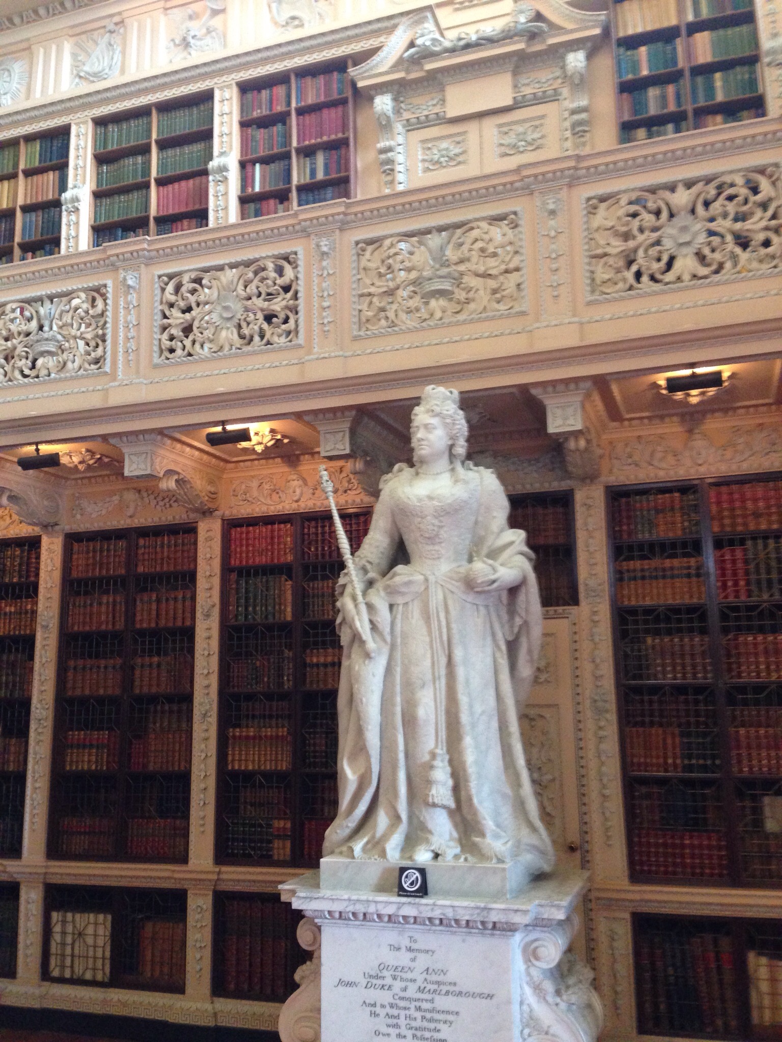 Bob and I spent Tuesday at Woodstock — nobody’s farm and no music. This Woodstock is a small town in Oxfordshire, England. We were there to visit Blenheim Palace, the principal residence of the Duke of Marlborough and the birthplace of Winston Churchill. It was originally built as a reward to John Churchill, the first Duke of Marlborough, for the Duke’s military triumphs against the French and Bavarians in the Battle of Blenheim during the war of Spanish succession.