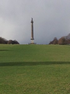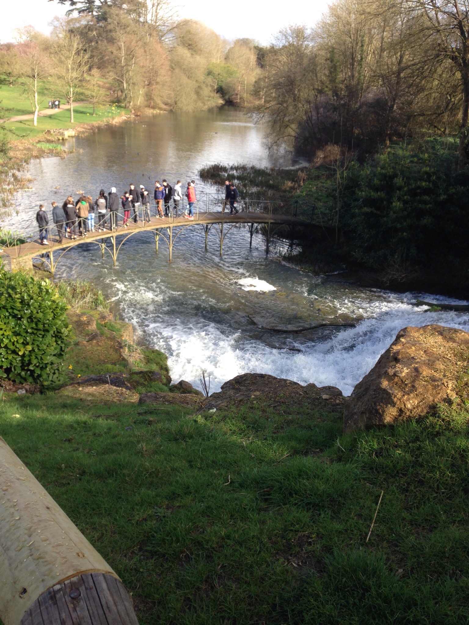 One arm off of the main part of the palace — open for events and conferencesLooking back towards the palace over the water terracesThe back of the palace and the upper water terraceThe grand entrance hallThe red room with some information on wigs — often filled with lice since difficult to clean!The library and a statue to Queen Anne who awarded the funds for the house for the first Duke of MarlboroughLooking over the Queen’s PoolA group of French students taking selfies and photos of the CascadesThe Cascades The column of victory commemorating the Duke’s military success in the Battle of Blenheim