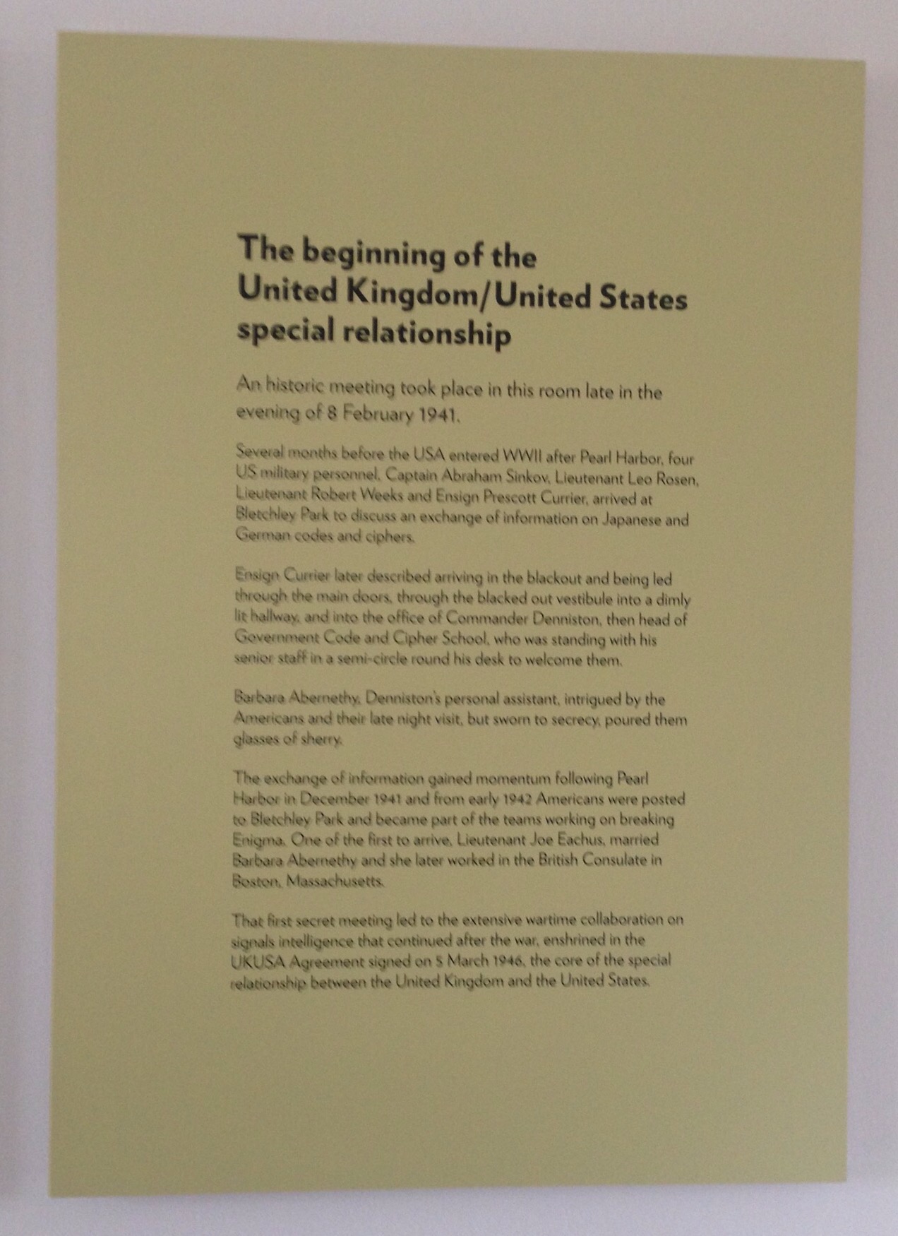 Bob and I spent a day reminding ourselves of how incredibly intelligent other people can be by a visit to Bletchley Park. In case you aren’t familiar with Bletchley Park, this is the area where a number of individuals worked on code-breaking during WWII. Bob and I became interested in this after seeing the movie, Imitation Game, a few years ago. The movie focused on the work of Alan Turing, but there were a number of individuals who contributed to the effort. The grounds (and many of the buildings) where the individuals worked and lived are part of a tour of the grounds. The whole experience is very well put together with an opening film to provide context for the exhibits, buildings, etc. that you see during your visit.