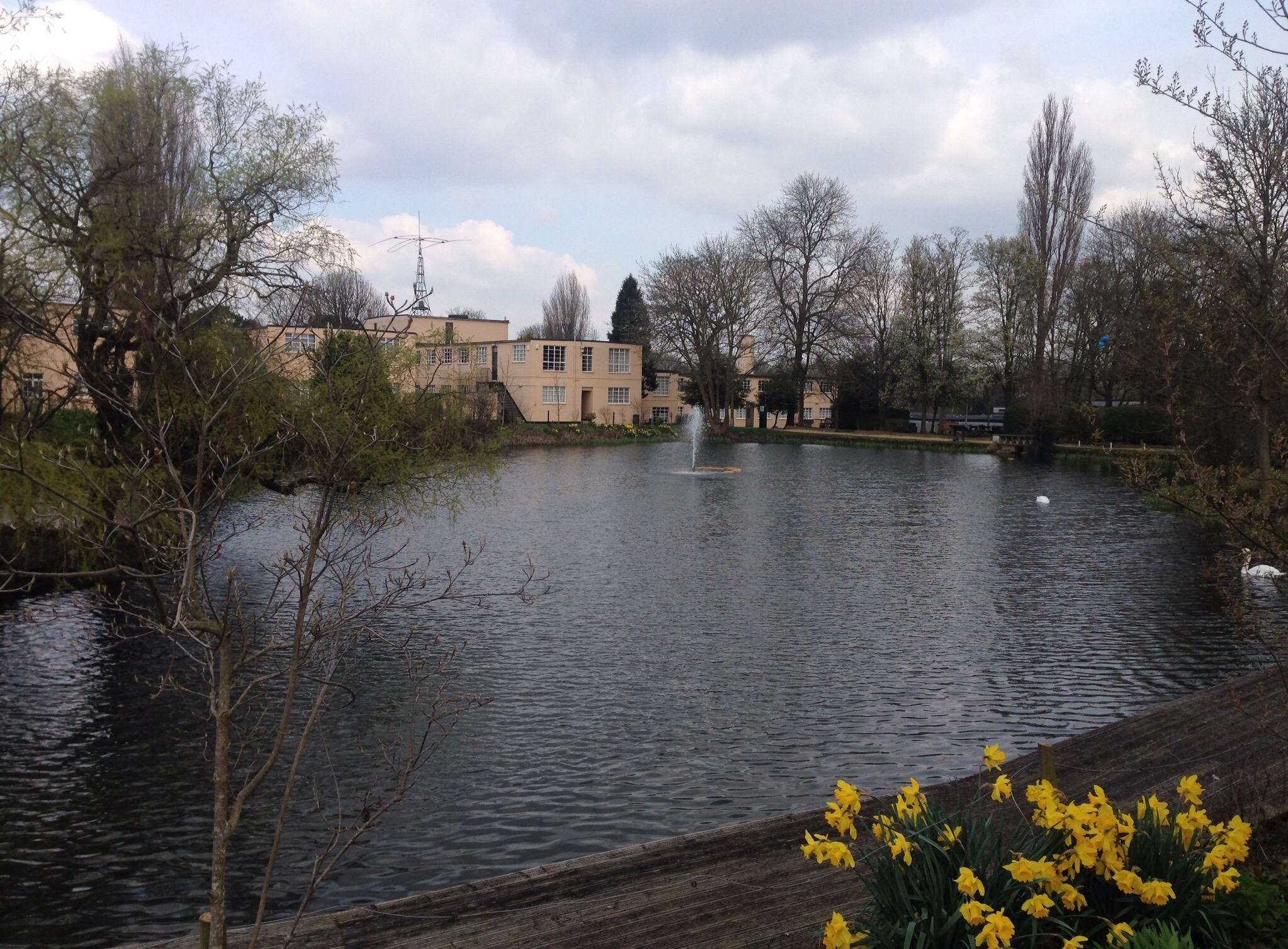 The building that houses Tropical World and a cafeThe manorFountains in the Long PondA footbridge over a creek in the parkA fun find on our walk through the parkA front view of the gateWaterloo PondThe boathouse on Waterloo Pond