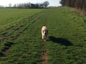 Hebe (the name of a type of plant as well as the Greek goddess of youth) is the grandmother of Stella. Hebe has doggy Parkinson’s, so needs some assistance getting through the stiles on the nearby footpaths but other than that loves her walks (and meals) as much as Stella. They are both very sweet natured and quite use to walking in areas with sheep (common here along the footpaths).
