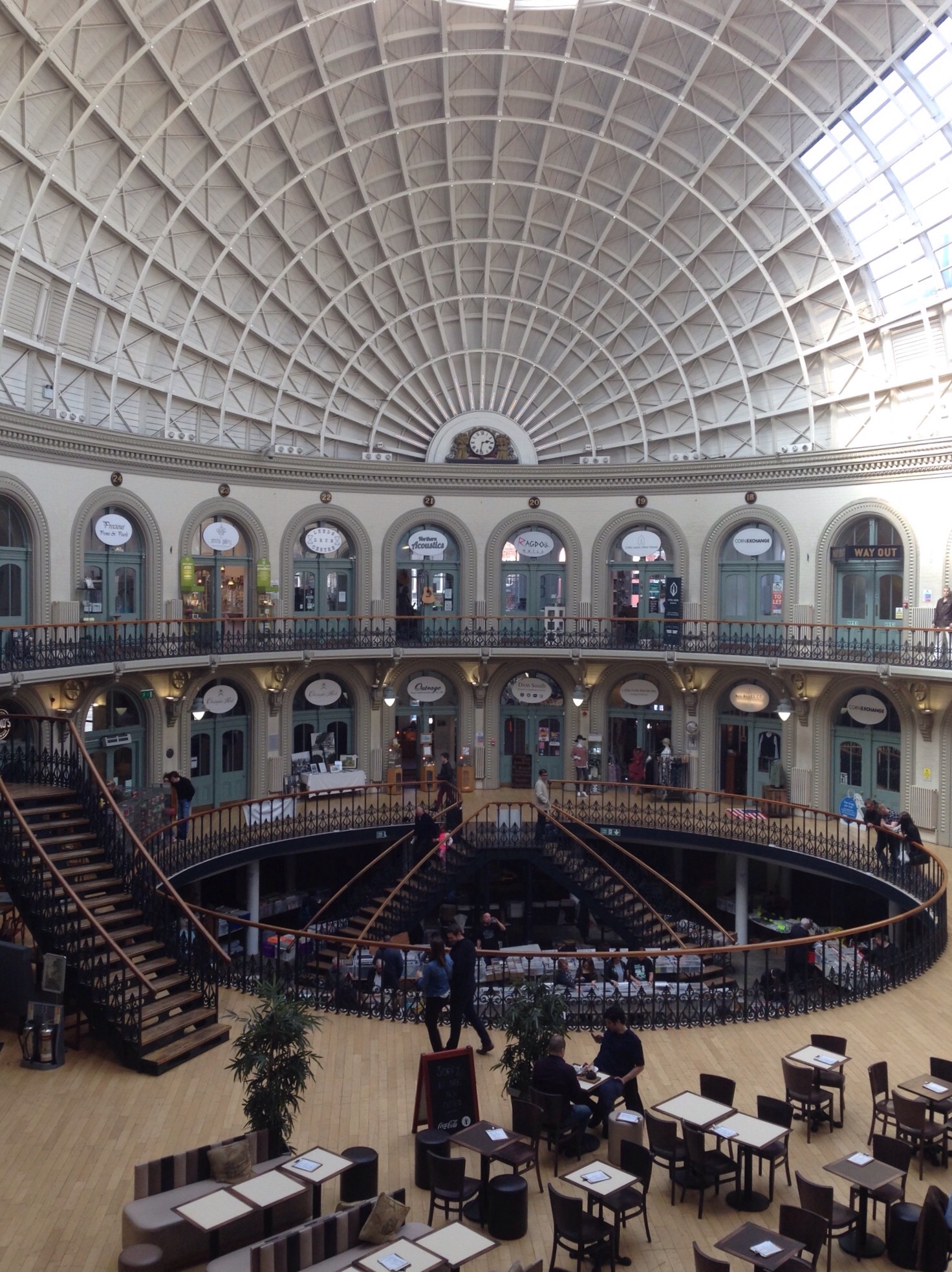 After finding the bus station where we would pick up the Megabus for our journey to Newcastle on Tuesday we headed into the town center.The former corn exchangeInside the former corn exchange — now a retail and restaurant centerDowntown buildings — the building that houses the Leeds (Kirkstall) Market is on the leftOne of many shopping arcades in LeedsInside one of the arcadesThe Mandela Garden that was dedicated to Nelson Mandela. Durban, South Africa is a sister city for Leeds.