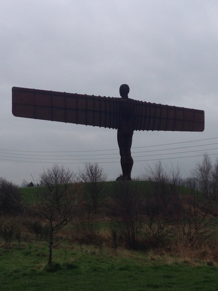 Love padlocks along the pedestrian walkway of the High BridgePublic art spotted on the way to the AngelWar Memorial on the way to the AngelWalking up to the Angel from the backTwo Angels of the North