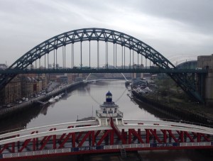 The Tyne Bridge over the River TyneThe Port of Tyne Swing Bridge in the foreground, followed by the Tyne Bridge, and the Millenium BridgeThe Millenium Bridge on the left, the Sage Gateshead (music venue building), and the Baltic Contemporary Art Center