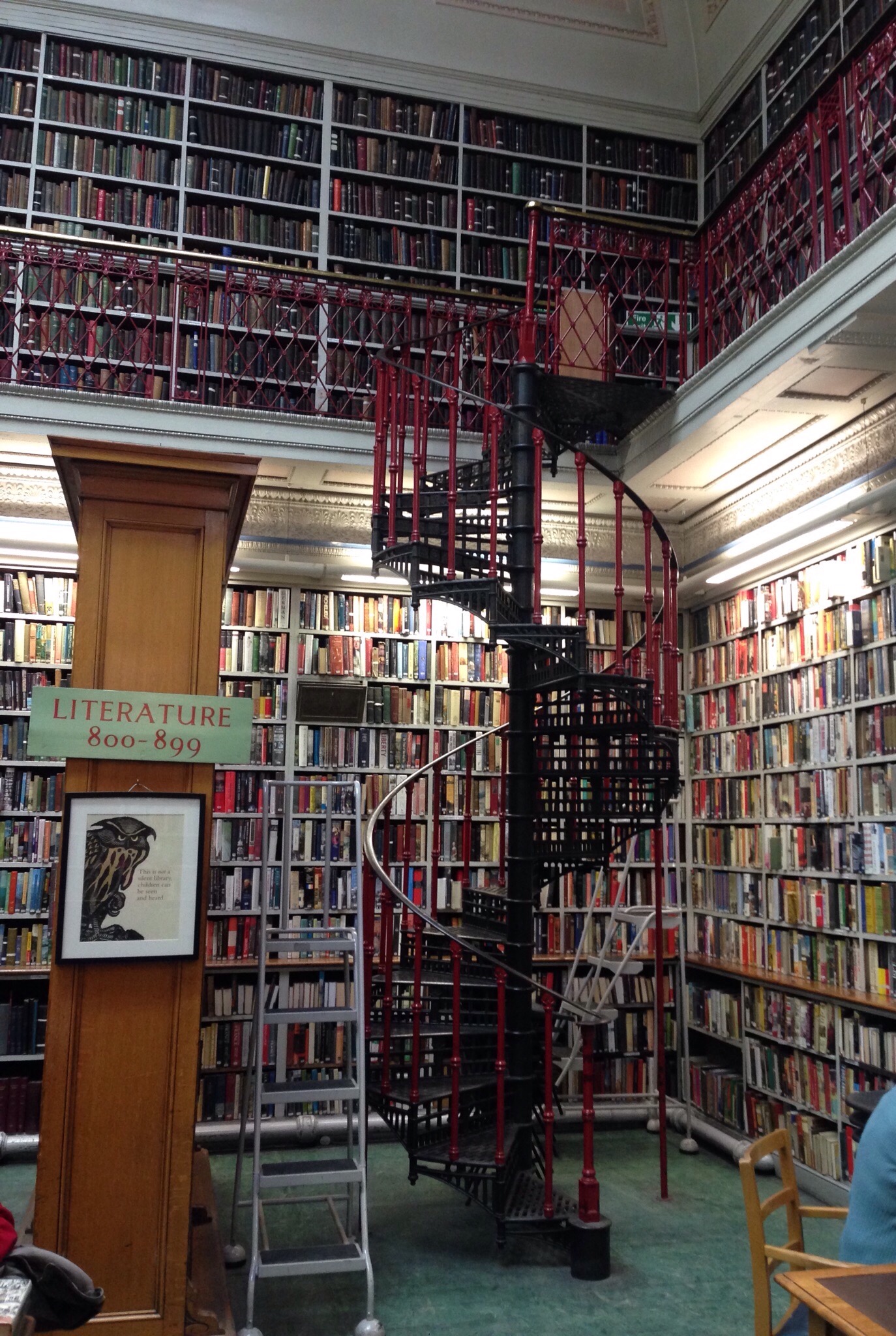 Outside of St. Nicholas CathedralThe nave of the cathedralNewcastle’s CastleView of the rail station from atop the keep (fortified tower)Another view of Newcastle and the old city wall from atop the keepWe had picked up something, or read something on line, about the Lit & Phil and their large collection of books. We weren’t quite sure what this was, but it sounded good! We learned from a nice volunteer that this is the Literary and Philosophical Society and that they have 180,000 books, many very old. They also host book and poetry readings and other lectures. Their website claims that they are the largest independent library outside of London.