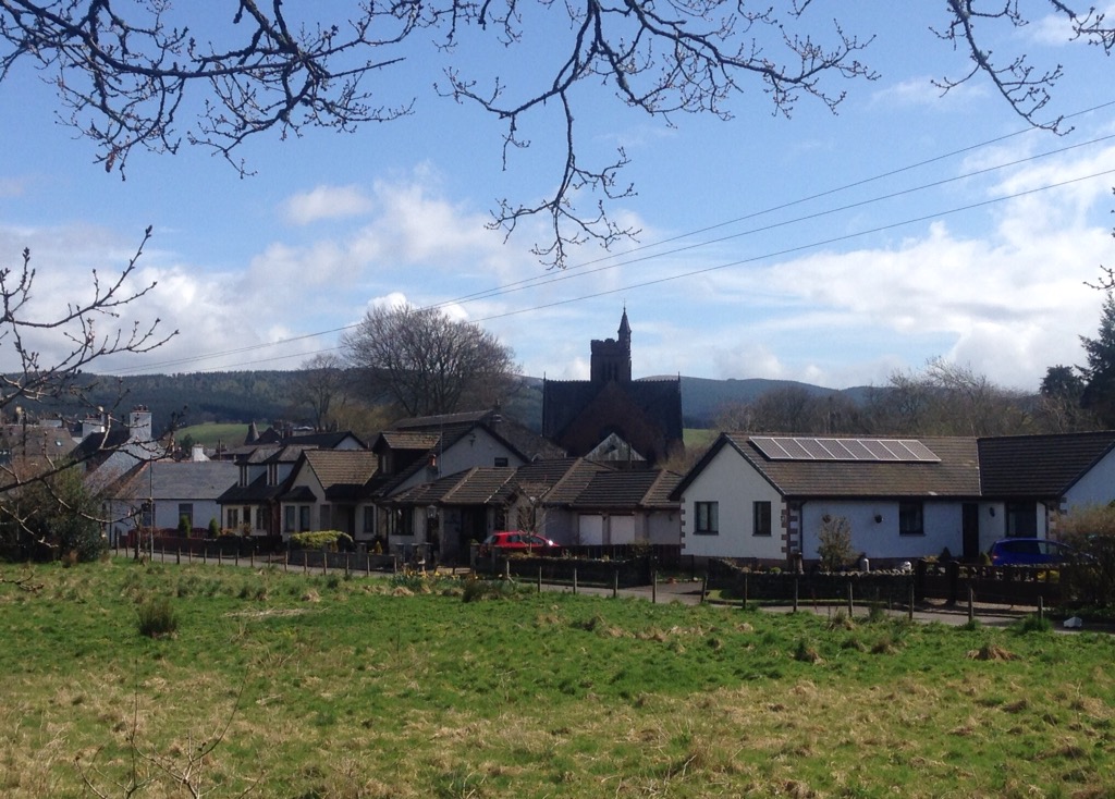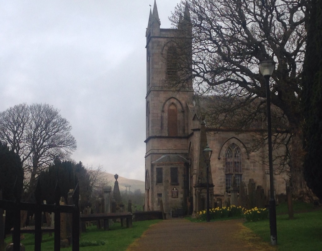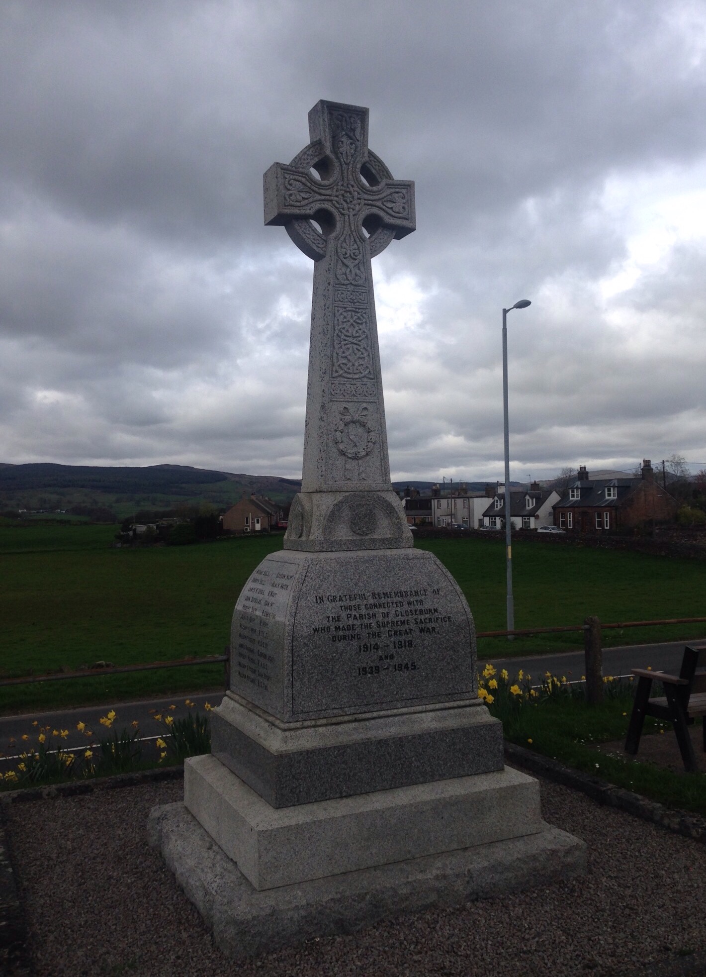 The lovely backyard of a home on the walk out of ThornhillComing into the village of CloseburnThe Closeburn War MemorialCloseburn Parish Church and graveyardSome ovine oglers