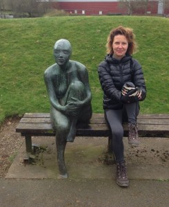 Bonding with a statue in the war memorial area near where we parkedSt. Bride’s church and graveyardPedestrian bridge at start of walk