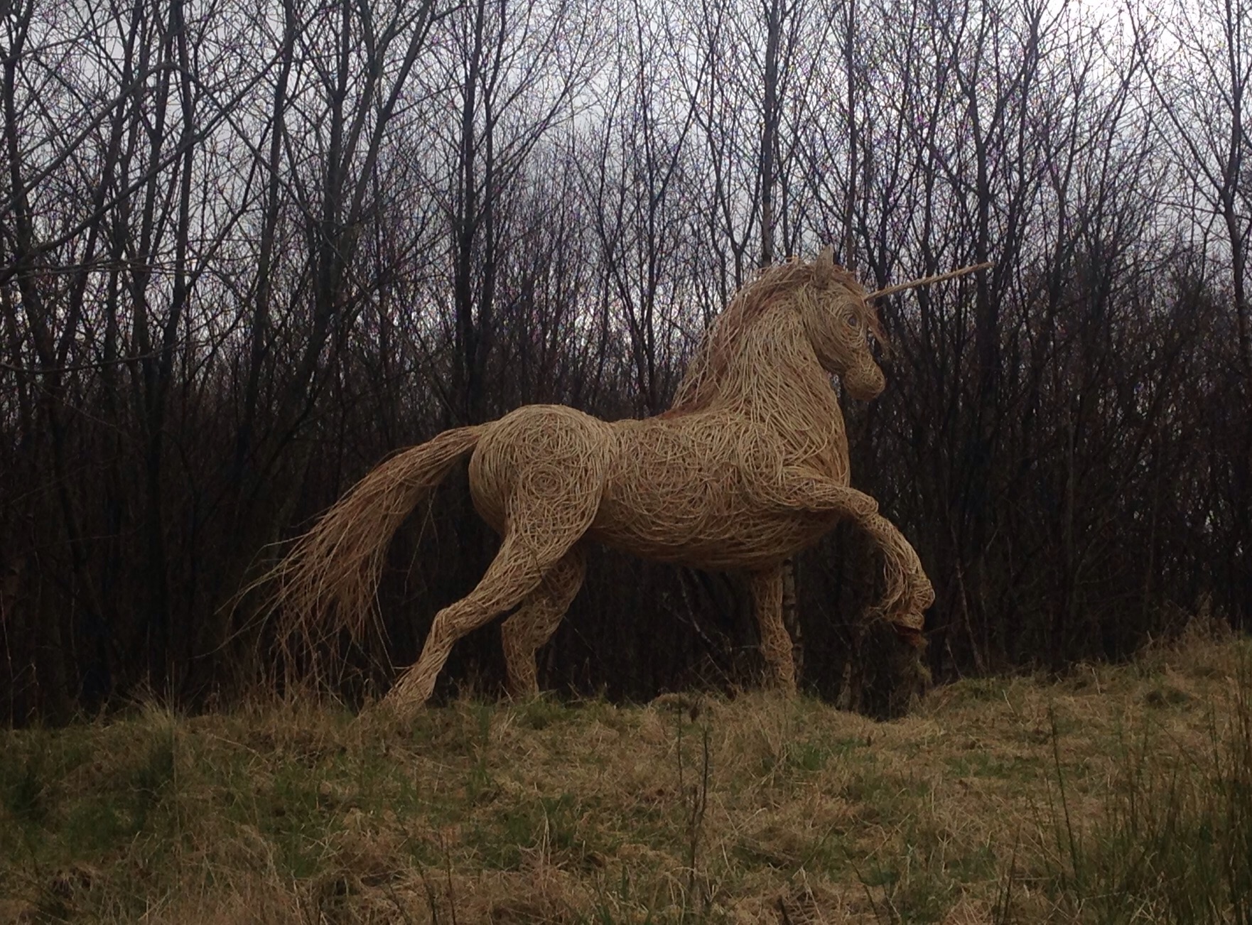Bob at the highest point of the parkSome of the stone-based cosmic art and lovely countrysideMore of the landscape art and the railroad bridge in the distanceA unicorn made out of willow branches installed in time for National Unicorn DayBack on the trail we found a stream and tire swingSome of the bridges on our walkDuring our town walk in Sandquhar, we came upon the longest continually operating post office in the world!The old tollbooth building that houses the museum of the local areaRuins of the Sandquhar Castle