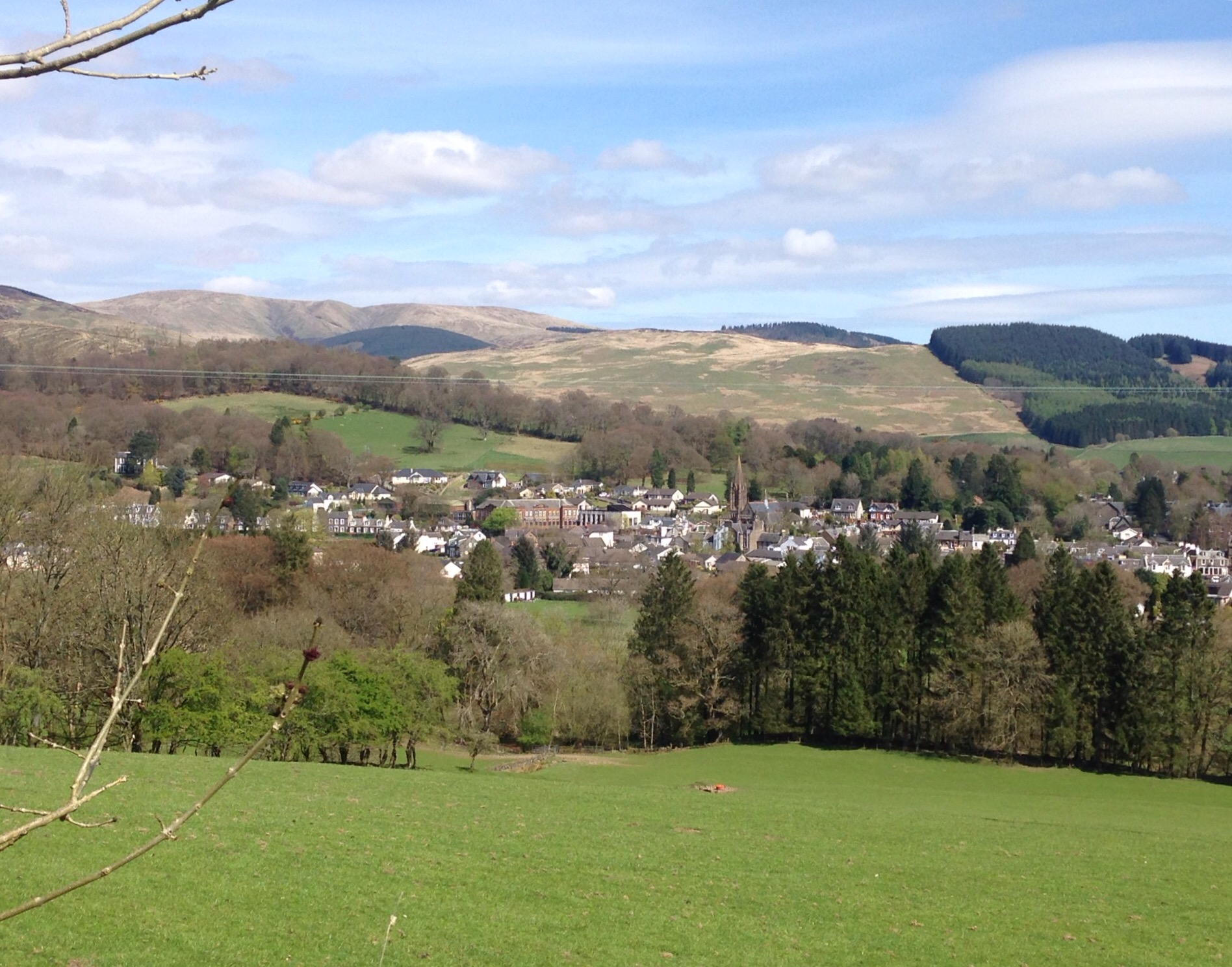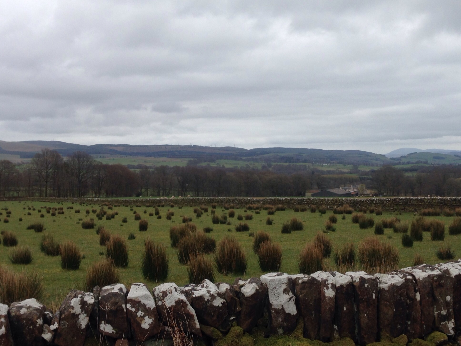 Along with exploring the larger Dumfries and Galloway region, we also like to have our non-car days where we get to know different areas around Thornhill and get out and about with Bruce. The following is the latest installment in “Hiking with Robert and Bruce” (as opposed to Hiking with Robert the Bruce — which would be nasty since he’s long dead). This time we did a Thornhill-Closeburn-Cample-Thornhill loop that we had learned about from staff at The Trigony Hotel when we stopped there for a look around.