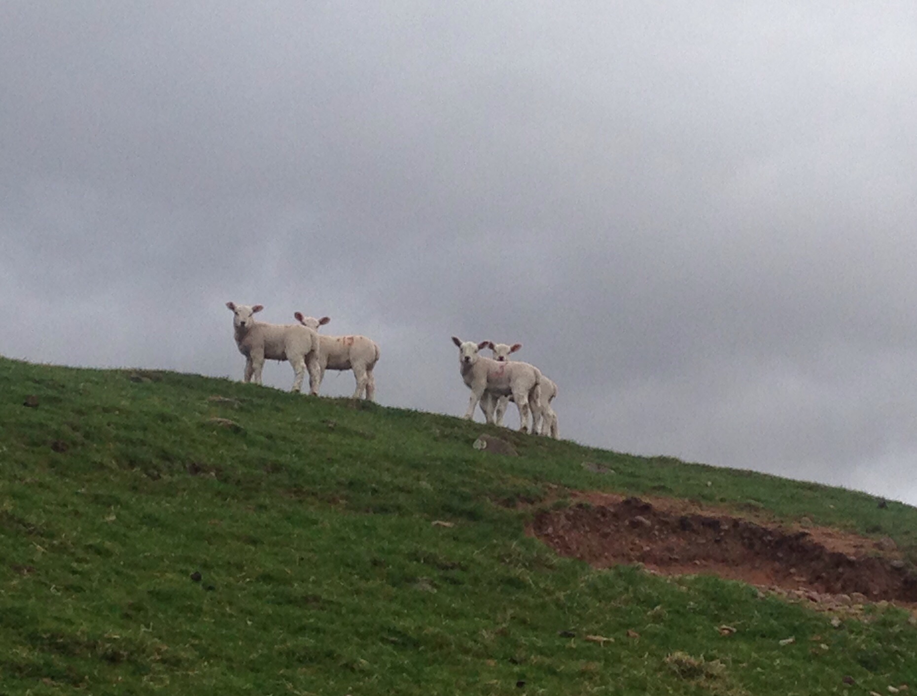 Looking back towards Moffat as we ascended the hillView of Moffat once we reached the farmyard with the chapel ruinsAnother view — probably overkill, but such a gorgeous day!The ruins of the chapelHappy feeding lambs