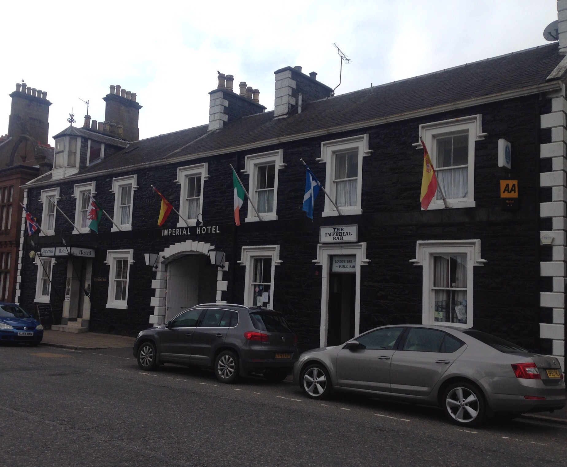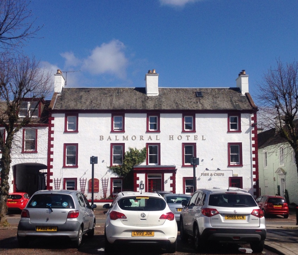 Finally, we did a quick walk-about of Castle Douglas but decided that we’d need to come back. The castle under renovationA colorful street in townA hotel in townClock tower