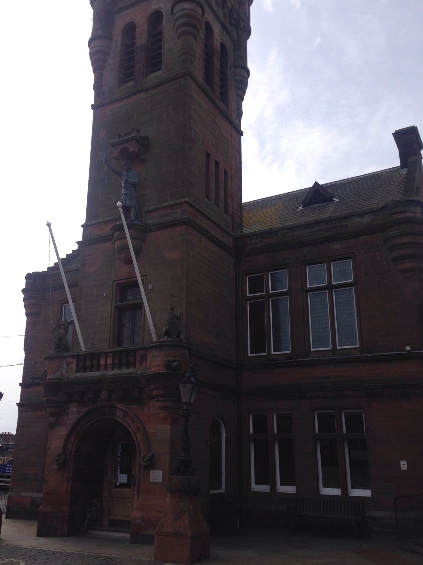 On Friday, Bob and I went back to Castle Douglas to walk around it’s lake and also to stop by the local brewery for a 5 pound tour and tasting. We don’t have any photos of the Sulwarth Brewery, but we had a great tour lead by the owner who told us about the history of the brewery (both the beer and the facility), how they had learned to bottle their own beer and how they are doing this for other UK craft brewers as well. We also enjoyed our tastes of the beer that they are producing. Castle Douglas libraryCarlingwark Loch — view 1Carlingwalk Loch — view 2Castle Douglas’ coat of arms and motto. Wisconsin’s motto is also “Forward.”