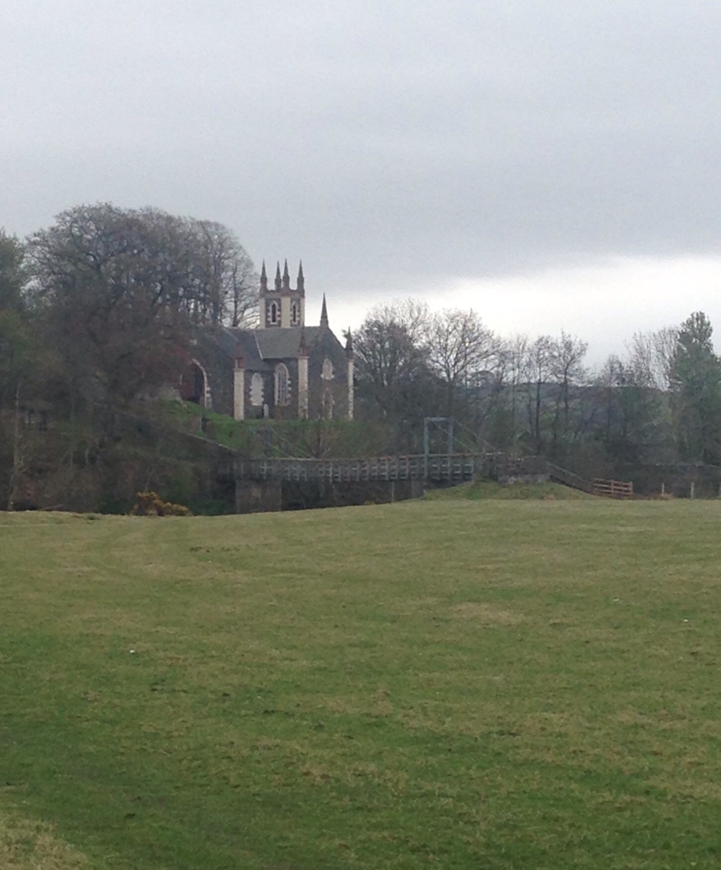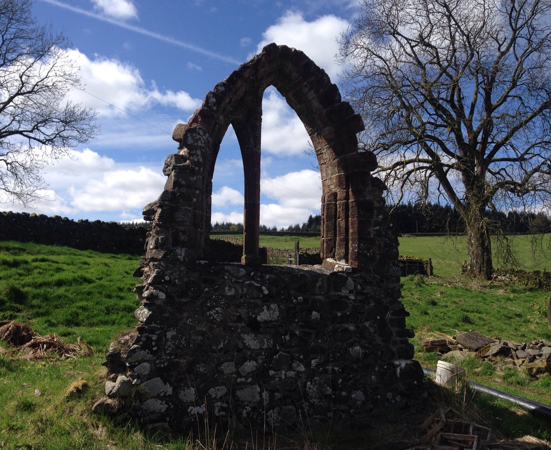 Since the hike to Loch Skeen was more mentally challenging than physically challenging, we decided to head back to Moffat to do the short Chapel hike that we hadn’t yet walked. This is a 2 mile loop route that takes you out of town near the gulf course and up a fairly steep hill until you turn into the farmyard that has the ruins of the old chapel before walking back through farm fields and then along the river back into town.