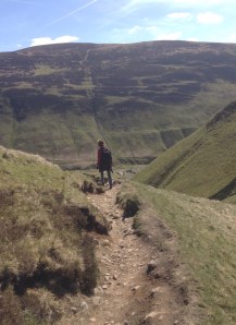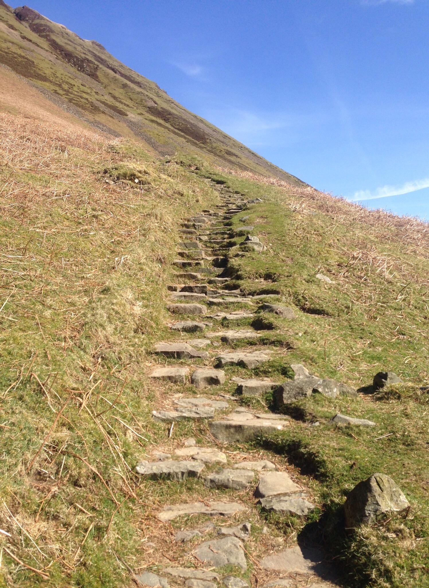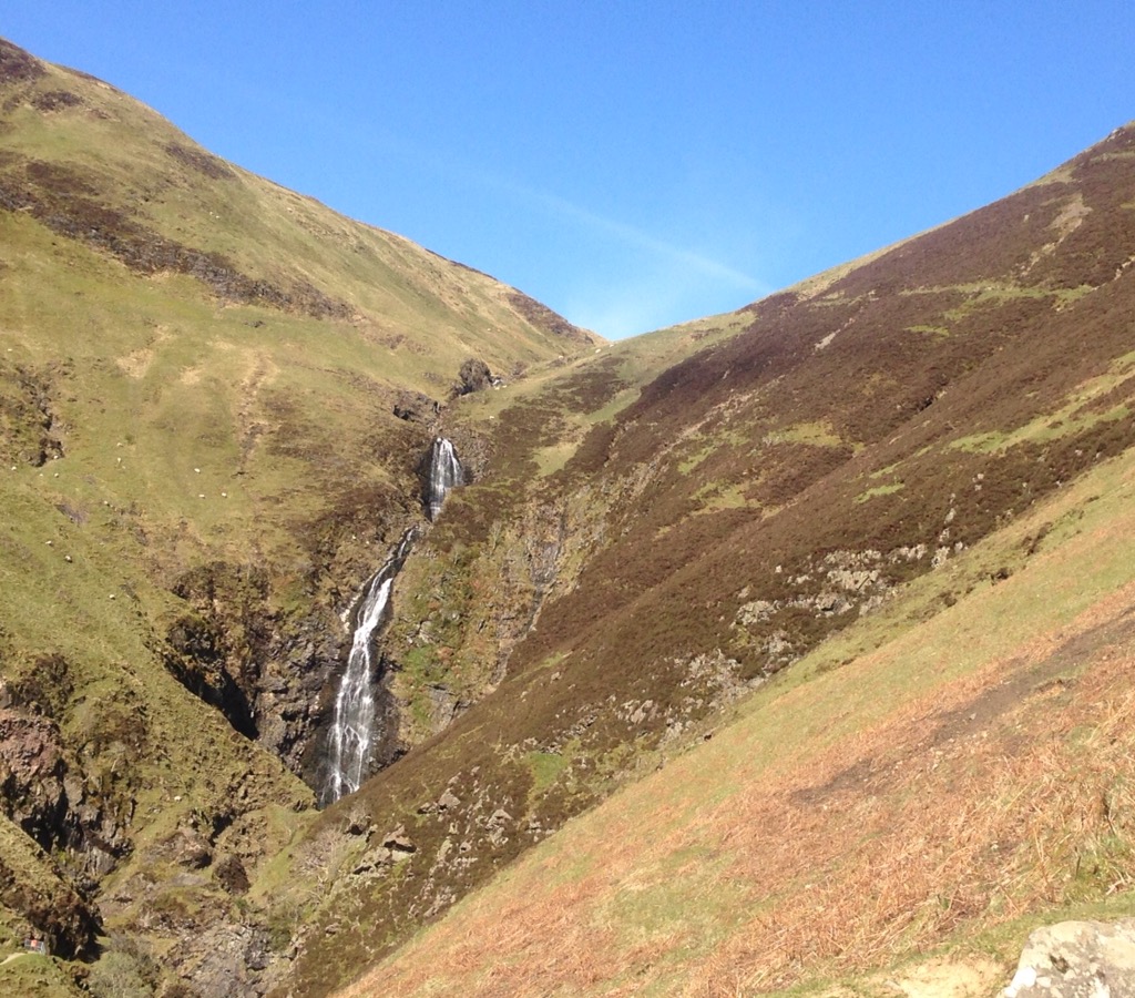 Starting up but looking back at the car parkLooking at the path upAnother view of the path upLooking over the edge of the pathThe grey mare’s tail –closer upThe beautiful Loch SkeenDefinitely worth the hike up!Watching our footing on the way down