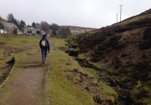 On a weird weather Wednesday, Bob, Bruce, and I headed to the highest town in Scotland for a bit of a hike on the Southern Upland Way, Scotland’s coast-to-coast route. We had walked a portion of this route out of St. John’s Town of Dalry. On Wednesday we walked about 90 minutes out of Wanlockhead towards Sanquhar before turning around and coming back. We started in heavy wind, got snowed on a bit, and then saw sun before we were through.