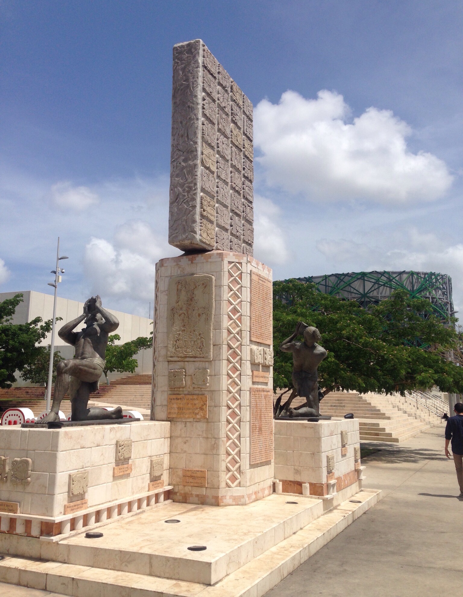 Our big trip to date was back into Merida to visit the Gran Museo del Mundo Maya. To get to Merida, we walked out of the house, down the driveway, and across the street to hail a colectivo to Progreso. Once there, we walked around the corner from the final stop in Progreso to catch a large bus into Merida. We were able to get off the bus right next to the museum which is on the outer edges of Merida. The entire trip (one-way) took a little over an hour and cost about $1.45. Not a bad deal!